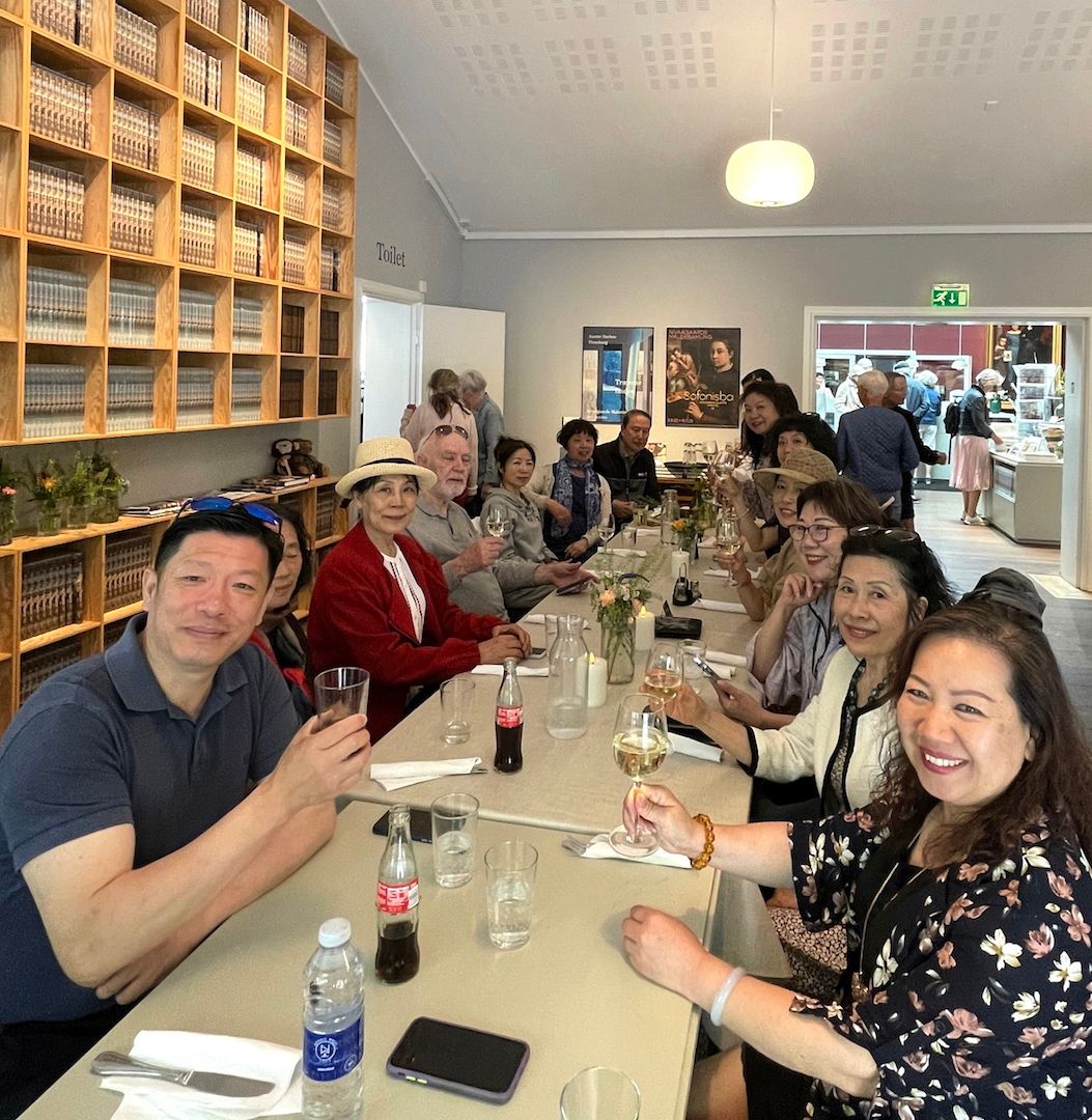 大家边喝着饮料,边吃着健康美味的西餐,笑声、细语、敬酒声,又一次展示了团结和谐的欢乐时光。我们这支队伍中有来自中国的嘉宾,有丹麦华商总会会长陆云彪、丹麦华人总会首席副主席柯本佑、丹麦华人总会妇女会会长叶康云、丹麦华人总会文化会会长俞露、中国旗袍协会全球联盟丹麦总会会长梁美德等,摄影的共同爱好让大家走在一起。