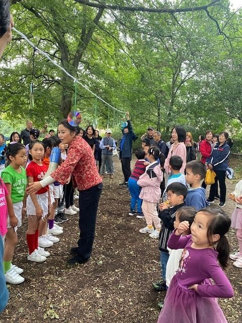 11:00,中国驻丹麦大使馆代表领事部领事高扬和张帆在掌声中,来到我们中间。司仪丹麦华人艺术团团长、文化会副会长磨红玲宣布:“丹麦华人总会中文学校拥抱大自然开学典礼现在开始!”家长们、同学们纷纷从四面八方汇聚过来