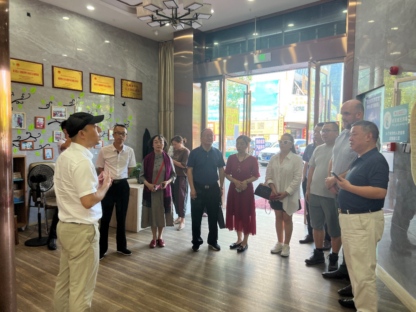 2023年9月18日上午10时许,湖南省政协海外顾问、澳中企业家俱乐部主席袁祖文先生一行,德国德中护理协会副主席、湖南省政协海外顾问、资深健康/疾病护理专家李霞女士,丹麦湖南总商会会长、中国广告协会数元委副秘书长、北京元圈科技发展有限公司联合创始人肖灵艳女士,到株洲乔松医养集团调研、指导交流养老产业国际化发展、科技+养老项目投融资及老年护理工作进行了深入交流和探讨。我家守护董事长陈伟明还专门做了科技+养老项目的专题汇报,与袁祖文先生一行对智慧养老的未来发展和布局做深度交流,就智慧养老模式拓展国内、国外养老市场达成初步共识。株洲市侨联副主席刘学林、株洲市侨联办公室主任王珩等全程陪同调研。