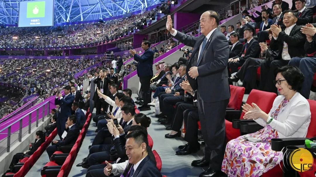 澳门特区行政长官贺一诚出席开幕式,为中国澳门代表团加油打气。澳门运动健儿们进场时,贺一诚全程站立鼓掌,全场观众高声欢呼,气氛热烈。
