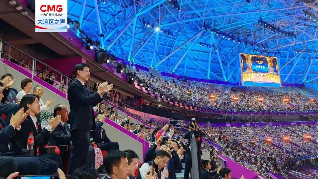香港特区行政长官李家超出席开幕式。当中国香港代表团列队进场时,全场热烈欢呼,李家超站立拍手致意,为运动员加油“打气”。