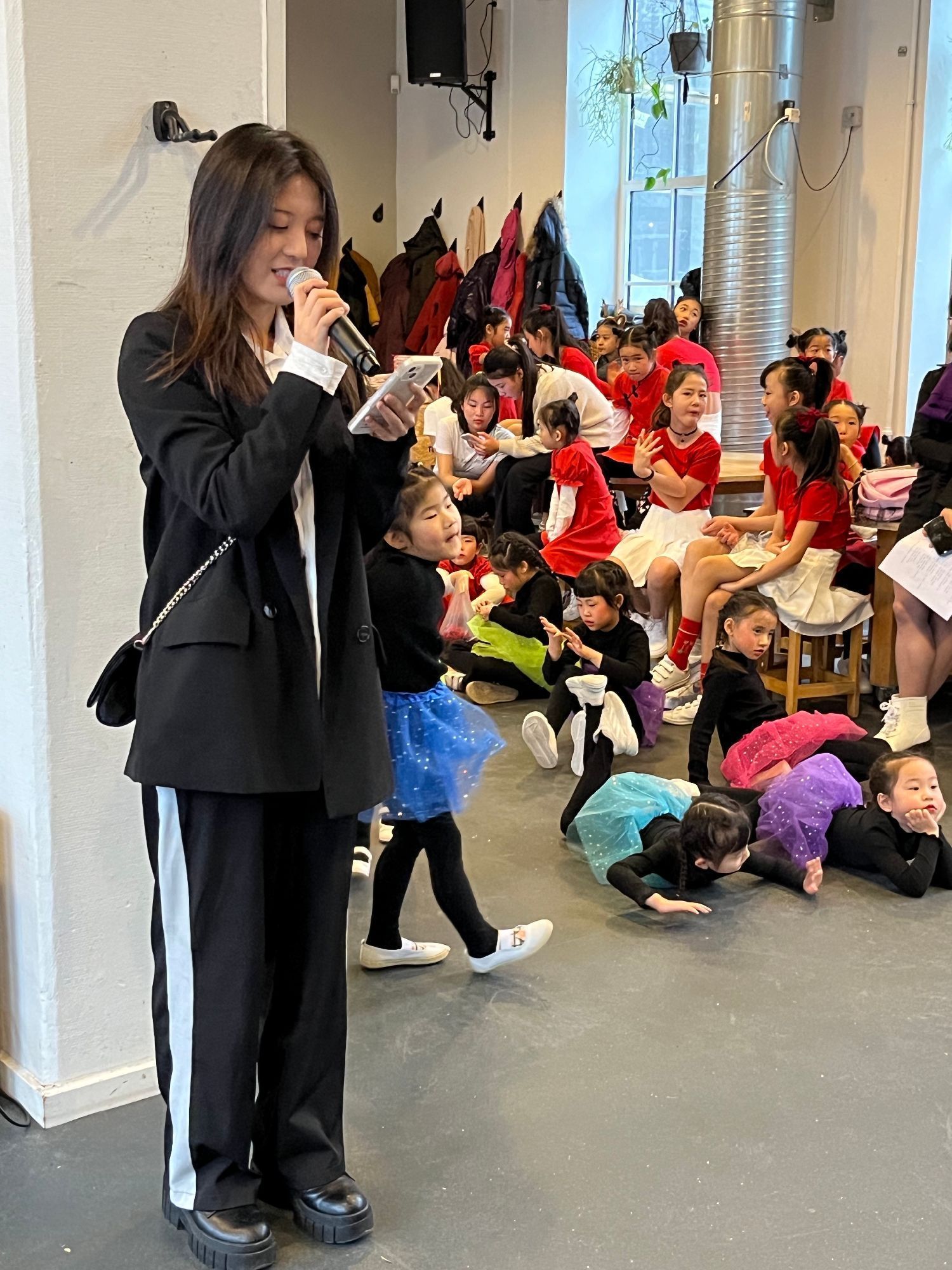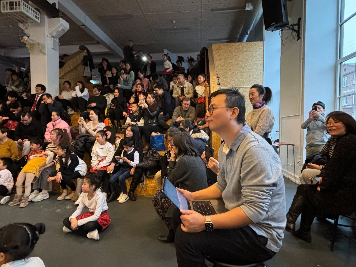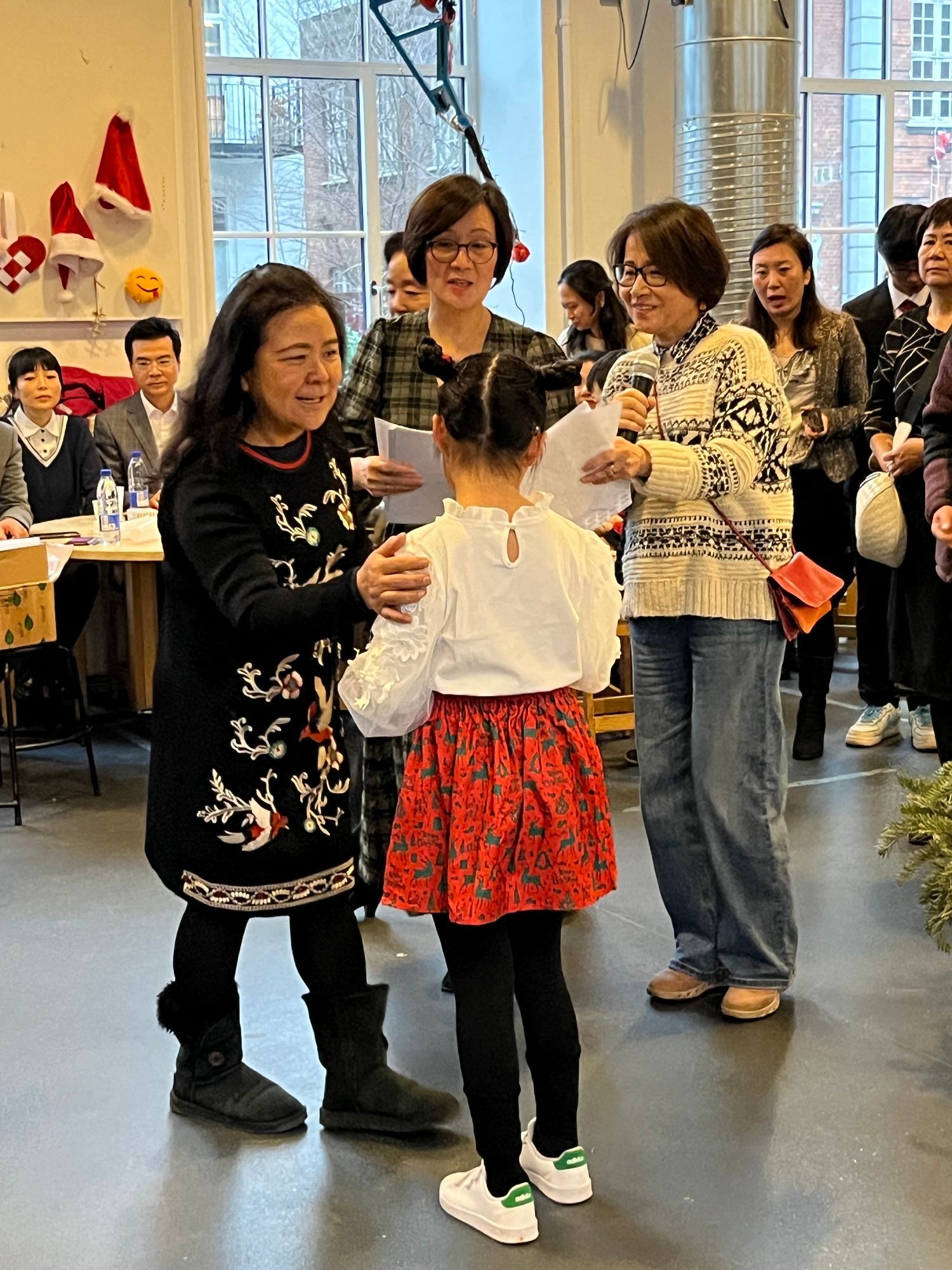 10时许大厅里已挤满了人,老师、学生、家长、丹麦华人总会的主席、副主席、总会常委、丹麦华人总会文化会的会员都来了,大家布置的布置,化妆的化妆,排练的排练,忙得不亦乐乎!在粉妆玉砌、冰封雪盖的日子里,三百多名学生、家长、老师欢聚一堂,这里处处充满着温暖、热闹、喜庆和和谐,不是一家,胜似一家。