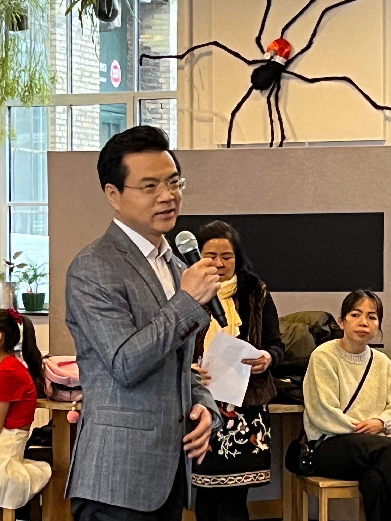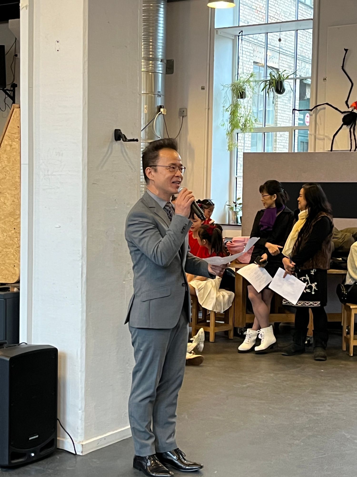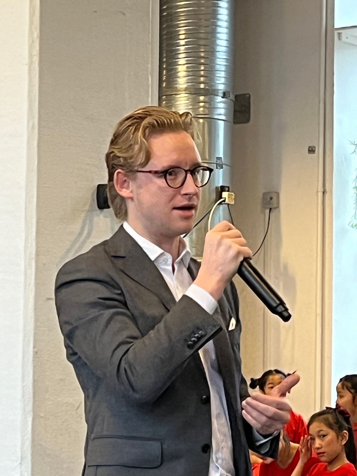 10:30中国驻丹麦大使馆文化参赞梁斌和夫人、领事部沈昂主任、哥本哈根市议员Emil MoselundØstergaard来了,全场响起了热烈的掌声。