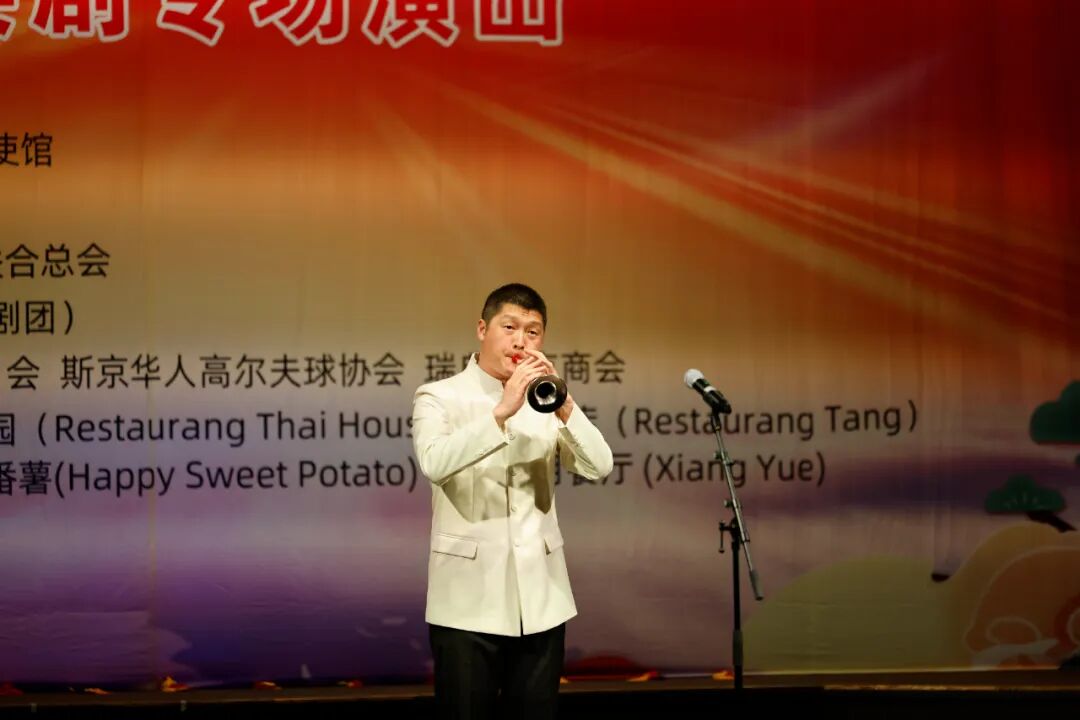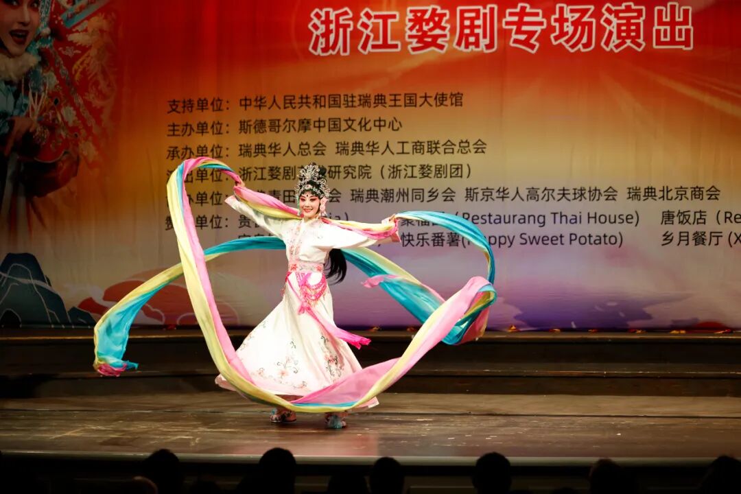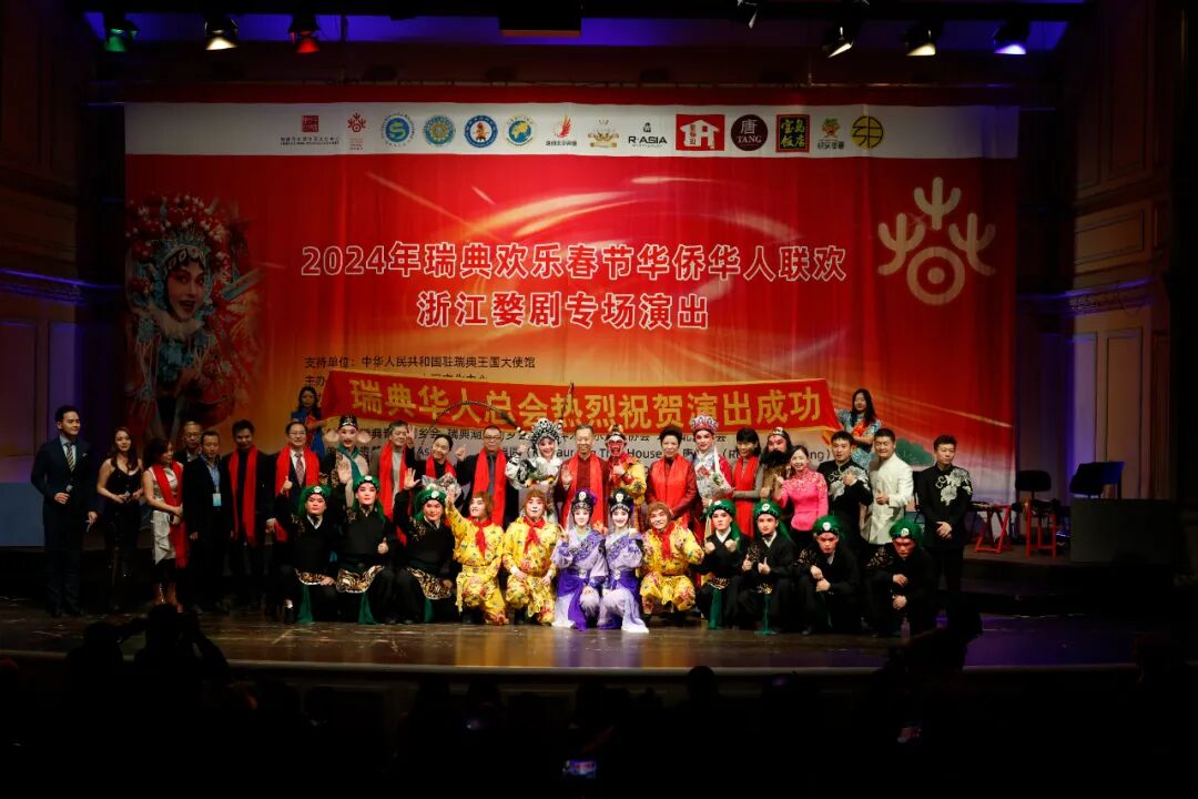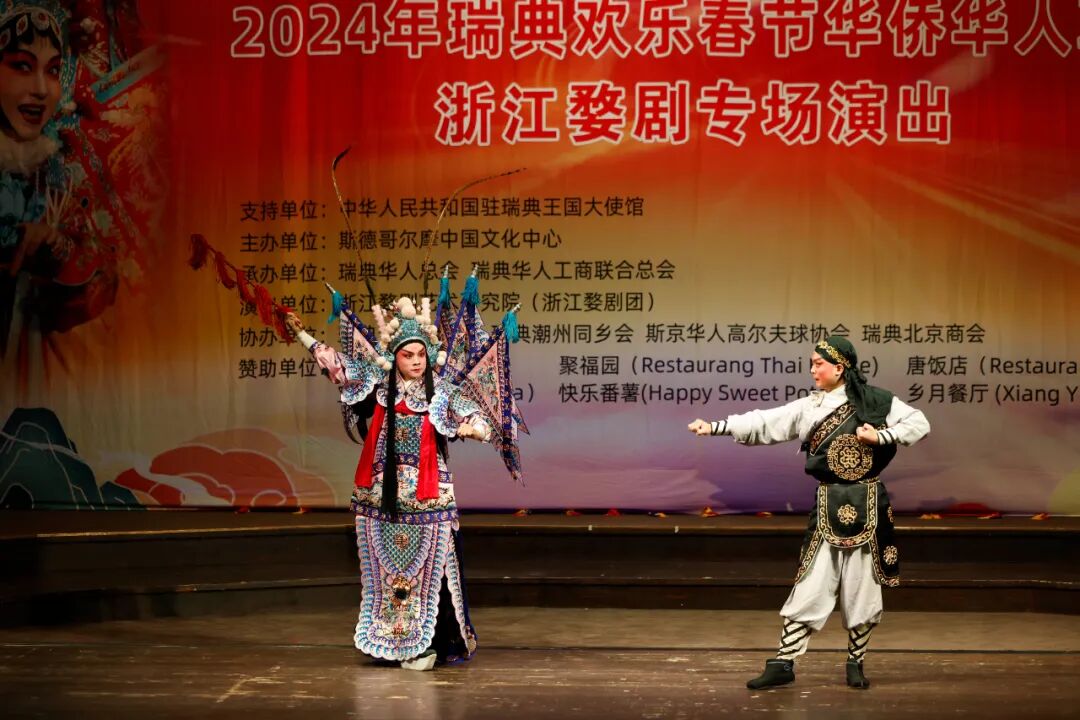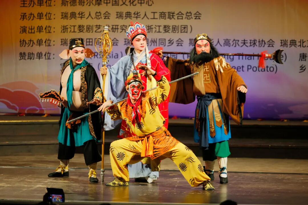 浙江婺剧团表演了《抬花轿》《吕布试马》《三打白骨精》等精彩节目,悠美唱腔和高超动作赢得阵阵掌声。现场氛围热烈友好,为旅瑞侨胞增添了“年味”,也让瑞典民众零距离感受了中国文化。