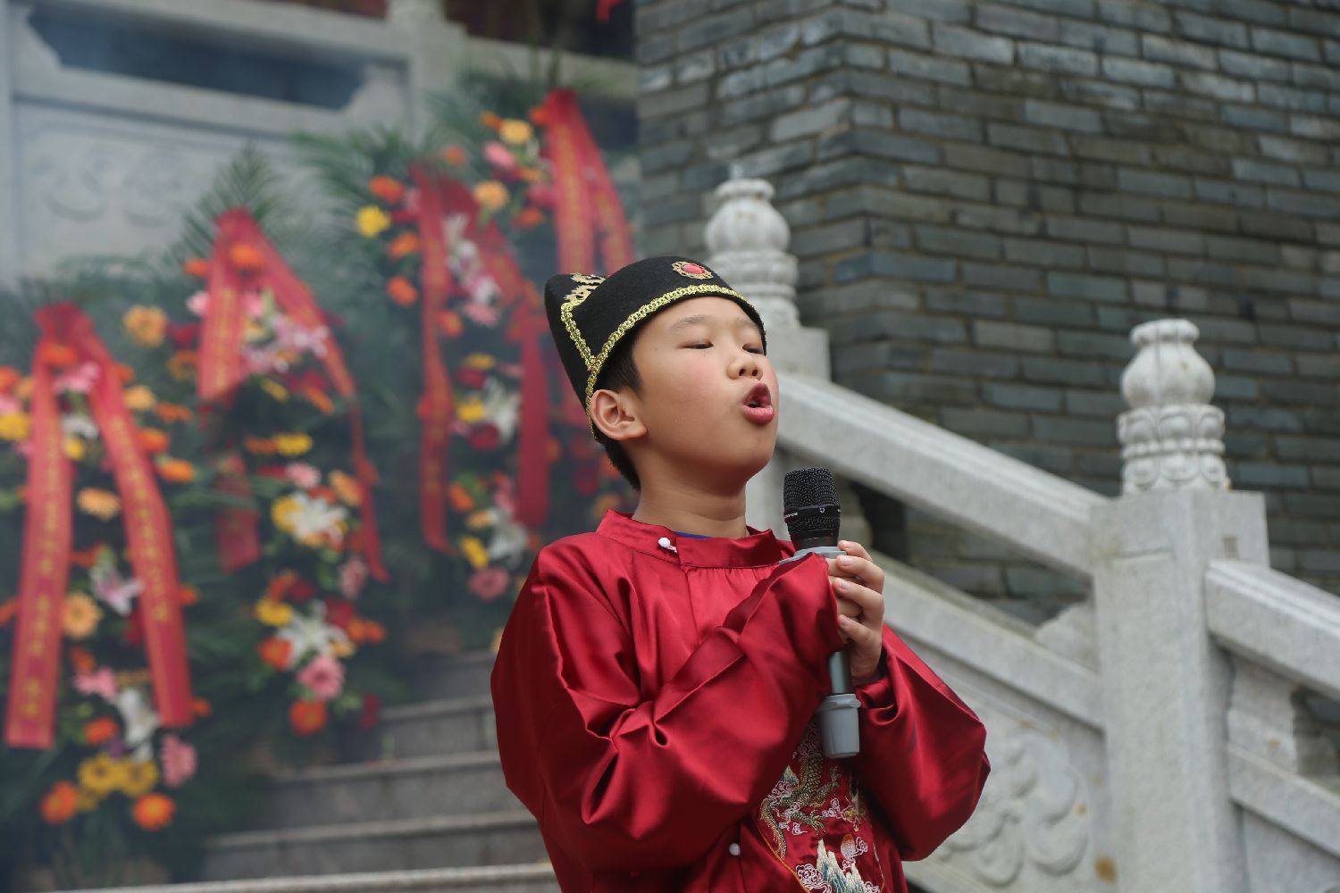 在南宁龙门水都苏缄忠勇园,苏缄塑像浩然正气。莫树铮小朋友朗诵民族英雄苏缄创作的一首古诗《祭苏绅墓》、广西当代诗人黄日初为活动创作了一首词《唐多令·北宋邕州太守苏缄殉国祭》。