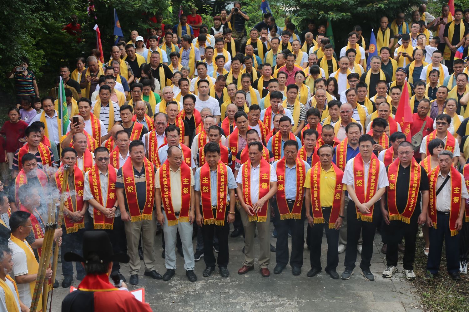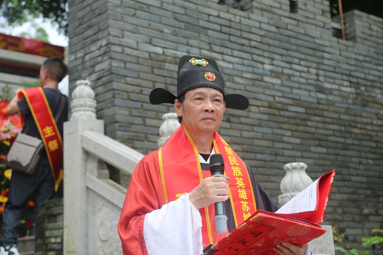 鸣锣三响,击鼓三通。上午10时,恭祭活动在南宁城隍庙拉开帷幕,司仪苏金山宣布活动开始,苏立孟诵读祭文,参加恭祭的苏缄后裔、区内外各地苏氏宗亲、应邀嘉宾依次上前上香敬酒,叩拜,瞻仰苏缄神像,现场庄严肃穆,表达对民族英雄苏缄无限哀思和崇敬怀念之情。
