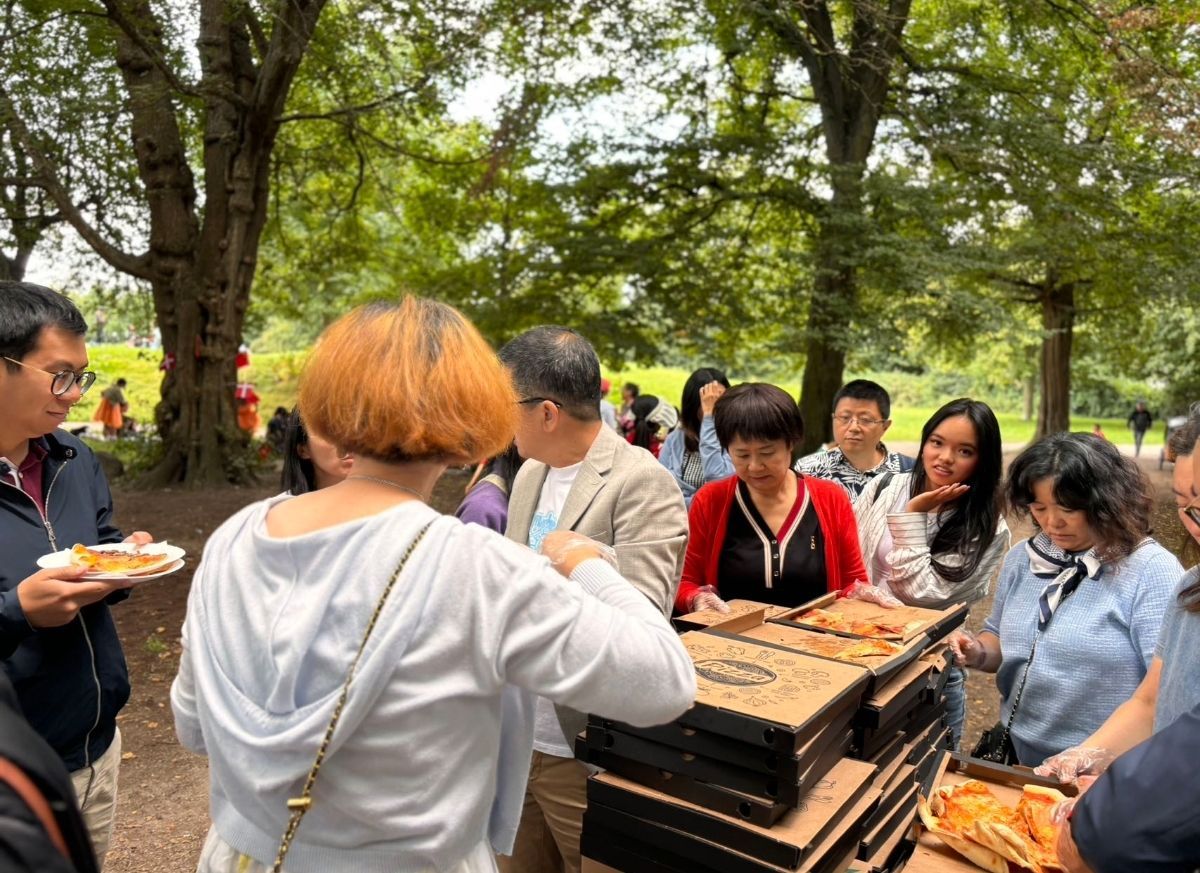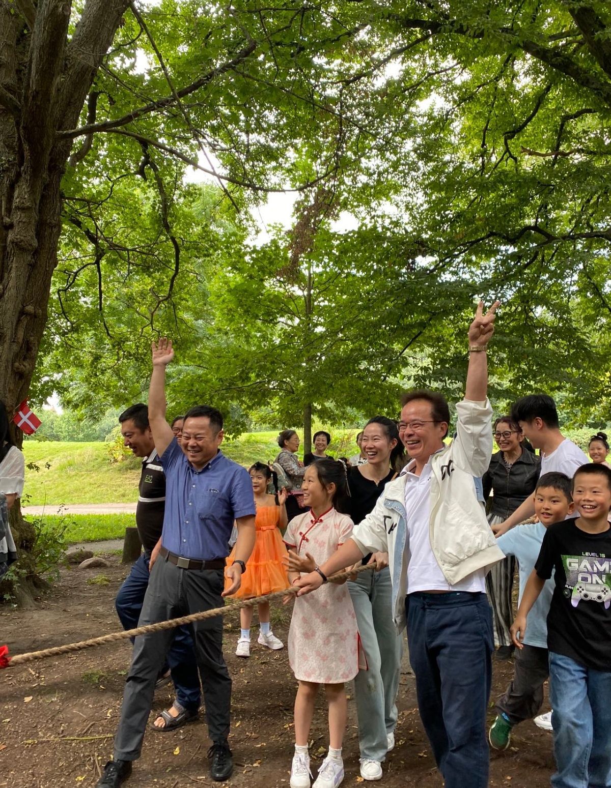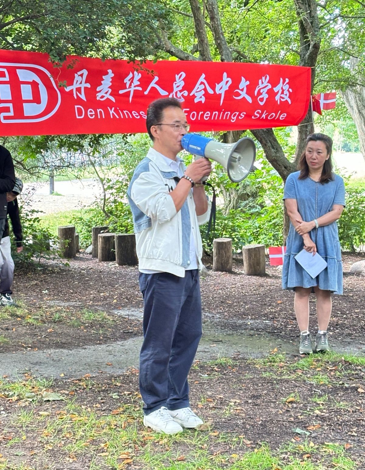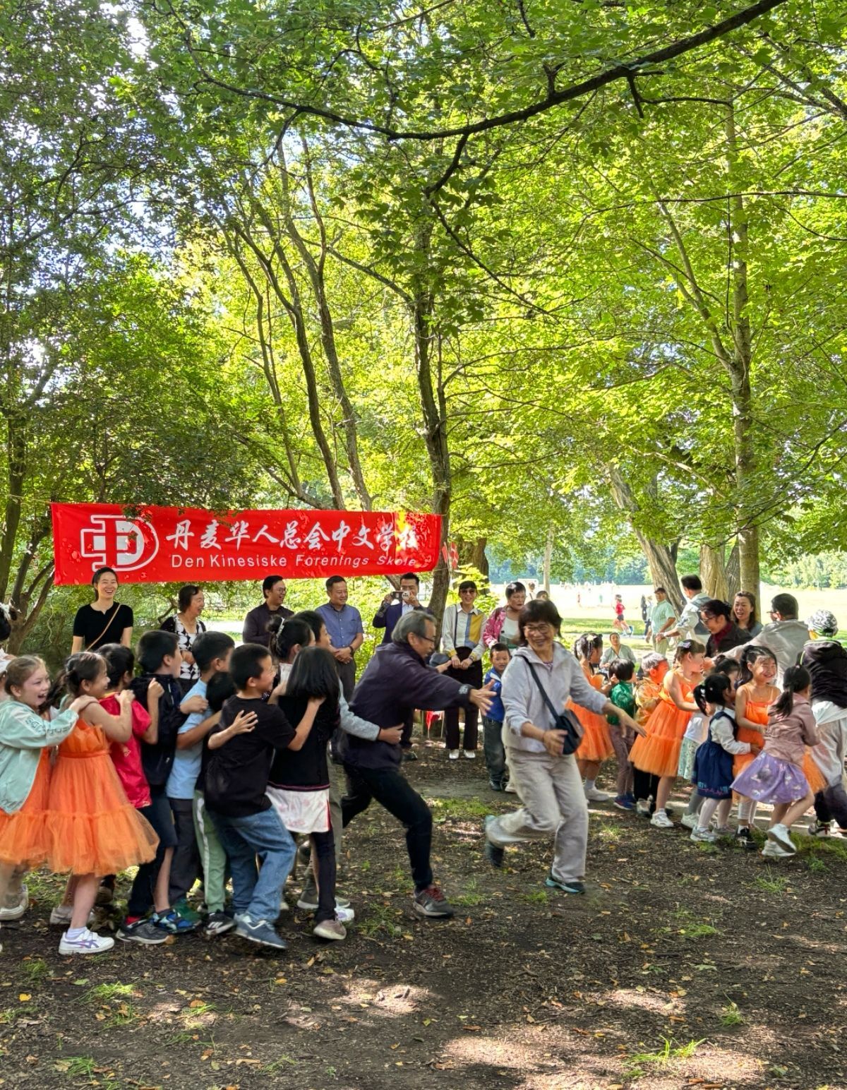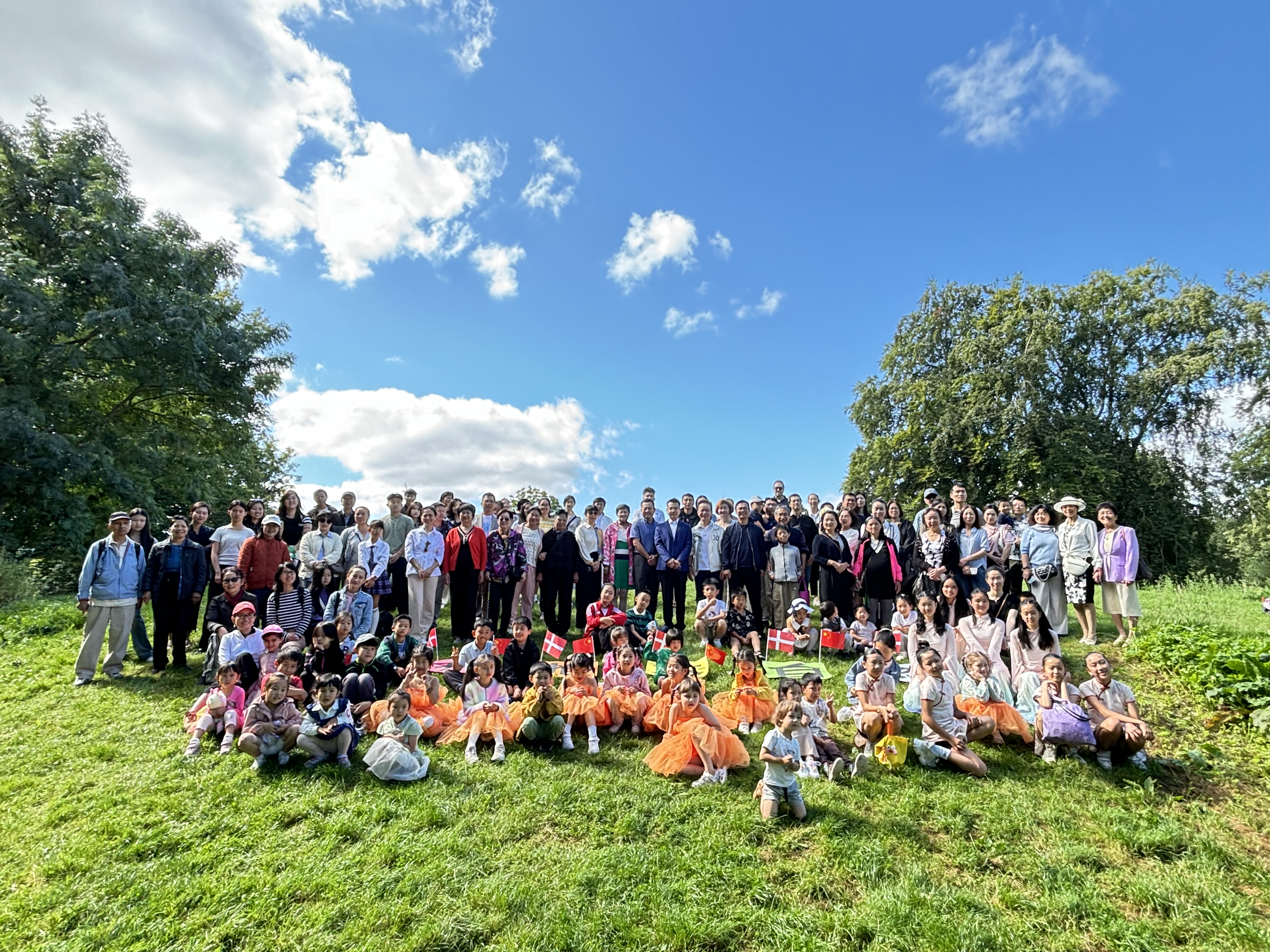8月17日丹麦华人总会中文学校开学啦,绿草如茵,蓝天如洗。9:30许我们的工作人员如约而至,布置的布置,排练的排练,准备午餐的准备午餐,忙得“不亦乐乎”。今天广阔天地就是我们的活动中心,“拥抱大自然”是我们的开学典礼。