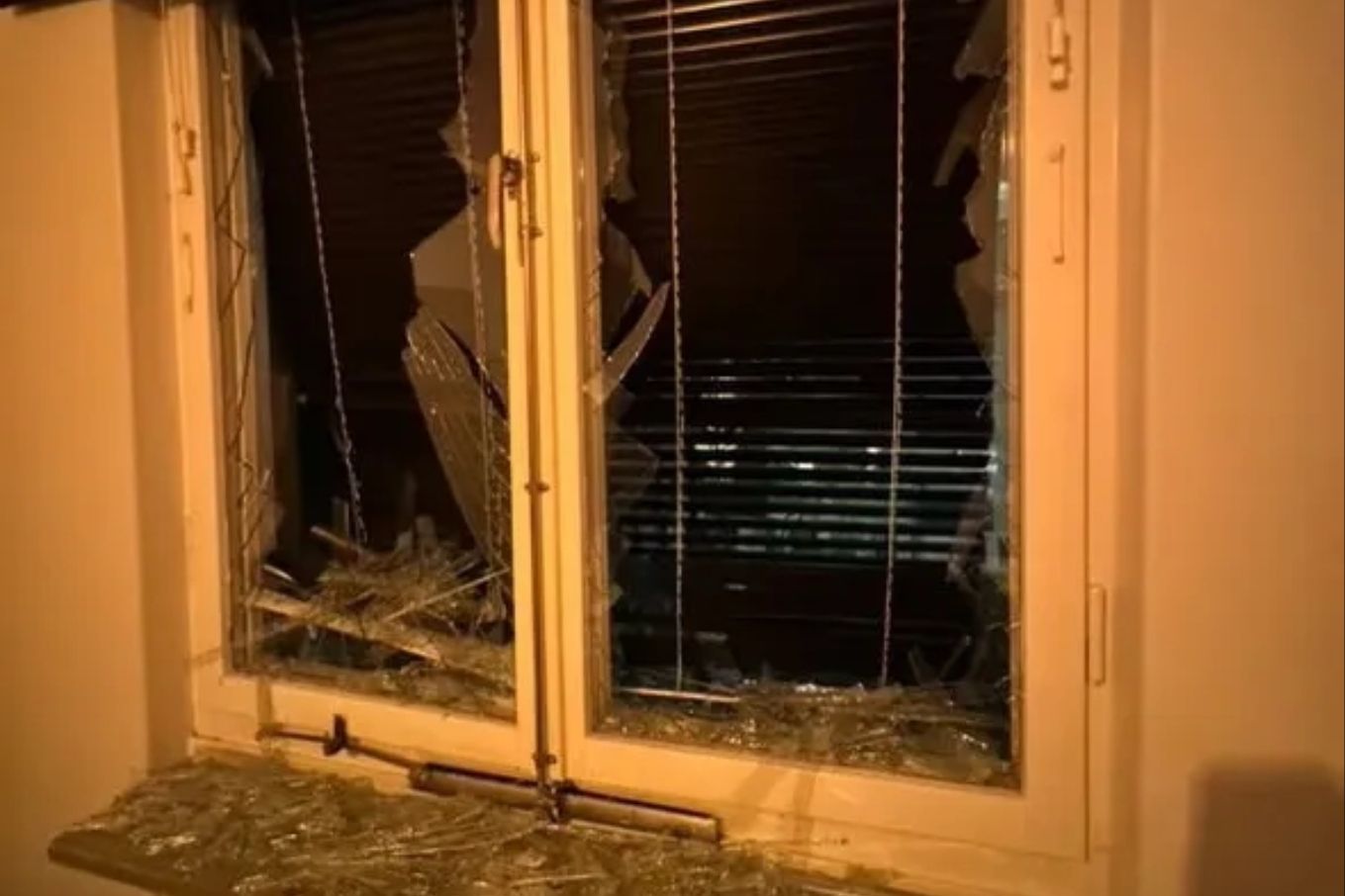 在客厅里,所有窗户也被震碎,玻璃碎片散落在地板和家具上。