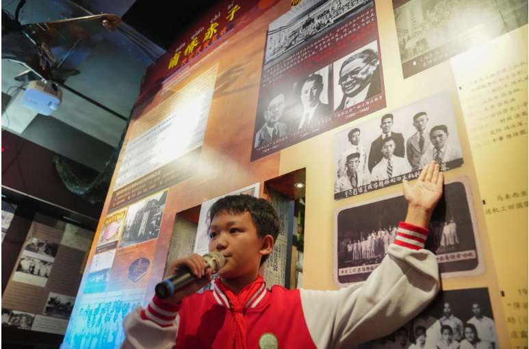 6月23日,昆明市西山区侨光小学的学生讲解员在校史馆向同学讲述南侨机工历史。