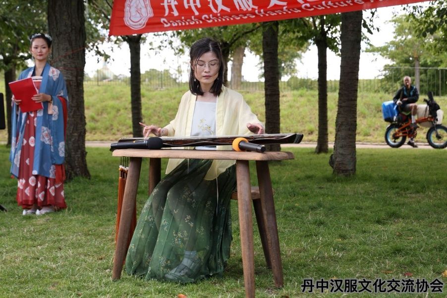 庆典最后,嘉宾与同袍们共同欣赏了古琴演奏和歌舞及汉服秀。所有身着汉服的会员和嘉宾踏着悠扬的古乐徐行。宽袍广袖、云鬓珠钗,衣袂飘飘、发饰生辉,披帛共海风翩翩起舞,仿佛让人穿越千年长河;嘉宾们与现场观众沉醉于这一份古韵之美,在汉服秀中领略了汉民族传统服饰的端庄与雅致,也感受到汉服背后的文化厚度与礼仪之美。有一位丹中汉服文化交流协会的同袍告诉我,汉服不仅是一件衣裳,更是一份跨越三千年的文化自觉。试想一下眼前的画面:在北欧的港湾,汉服裙拂过了北欧的风。这是一副多么奇妙的画卷,而我们正在画卷上行走着。
