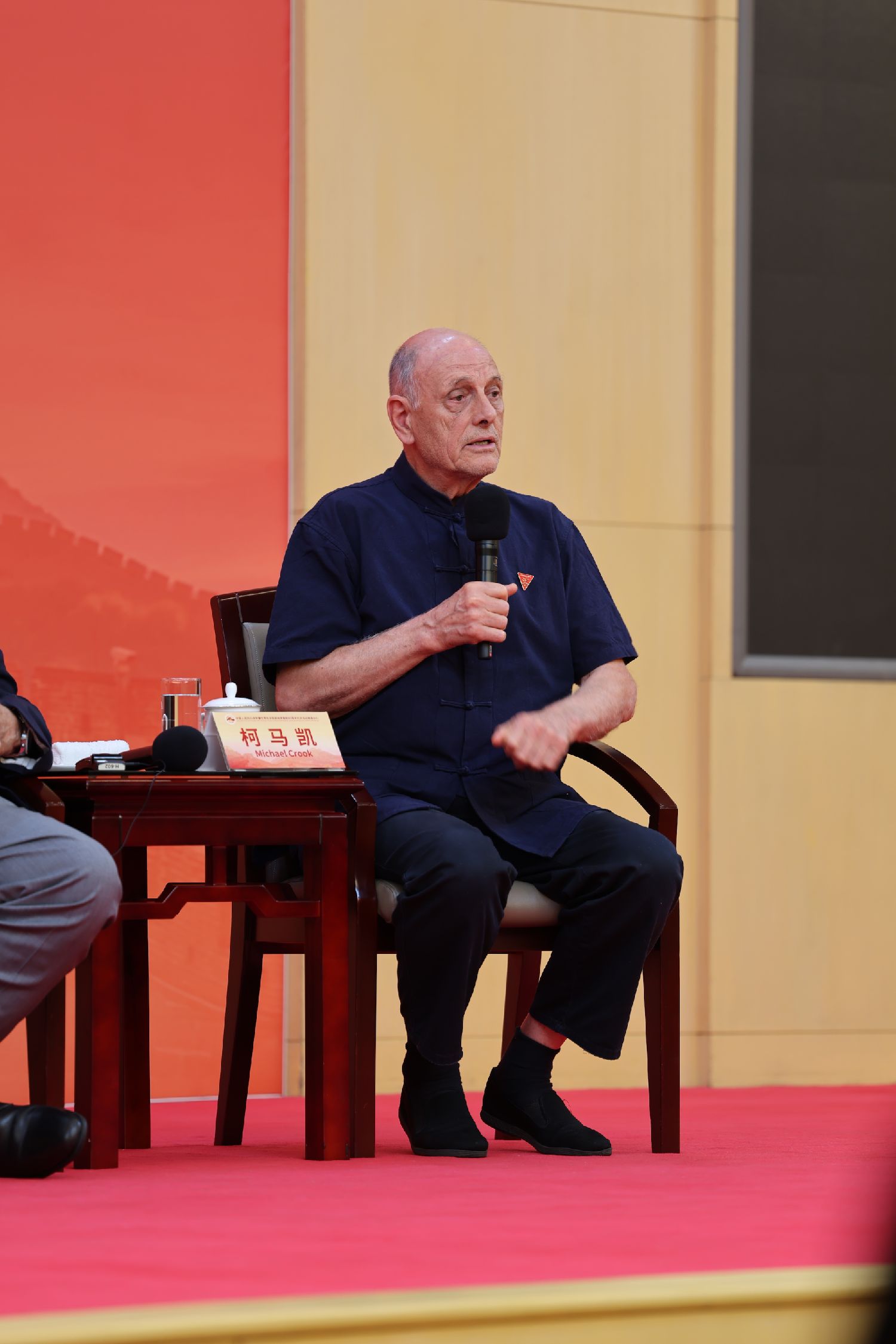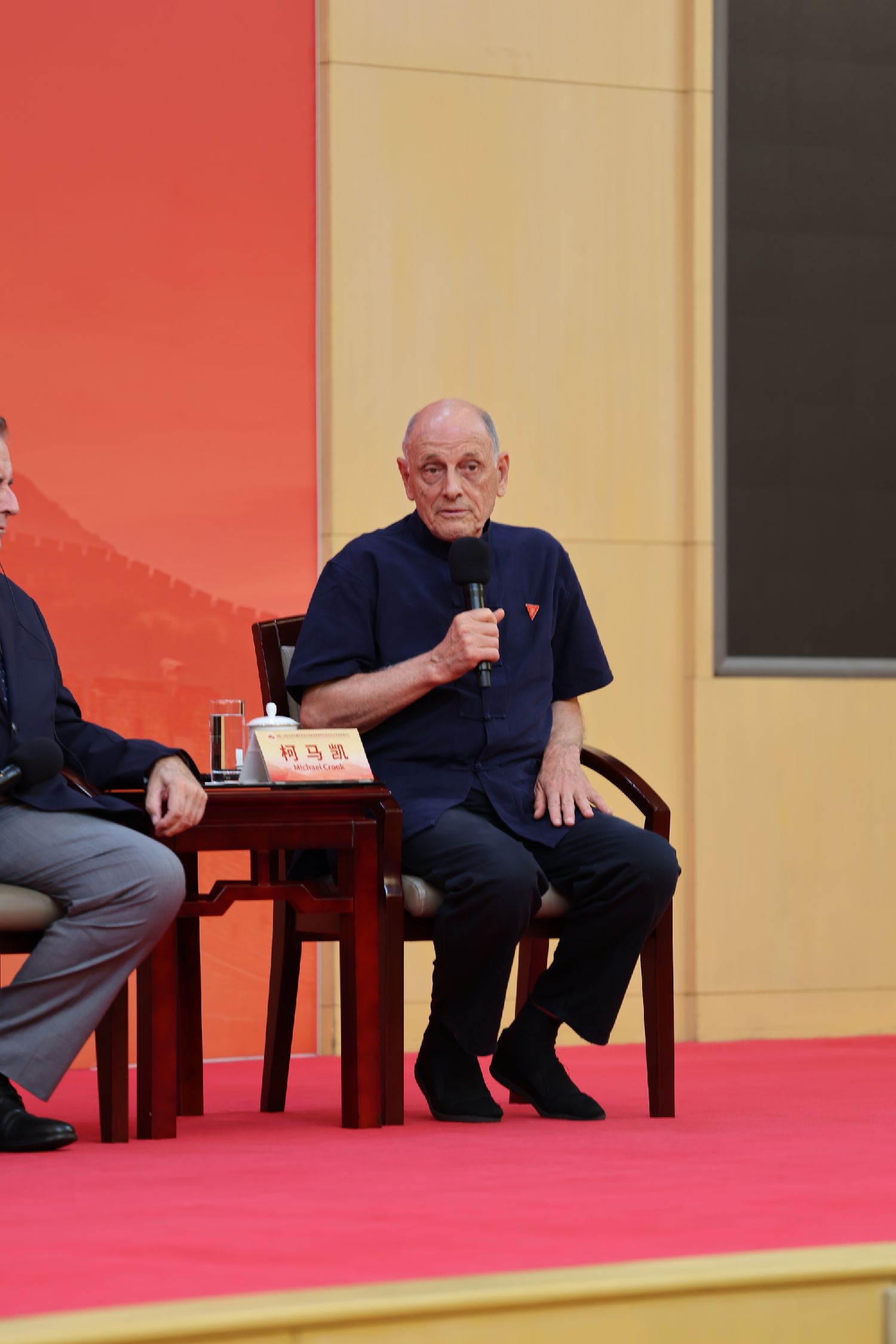 大家早上好,我是柯马凯,我的父亲大卫·柯鲁克是一名英国人,母亲伊莎白·柯鲁克是一名加拿大人,我在中国出生,在中国长大,接下来的发言我会用中文。