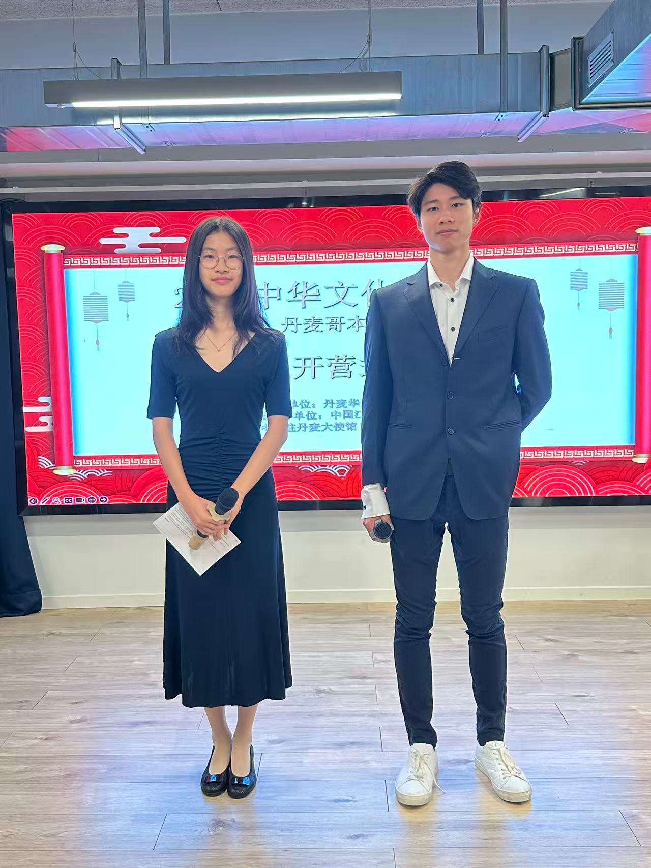 在音乐声中魏万荍、李彦颉两位司仪闪亮登场,他们用对中华文化的热爱,庄严地用中丹文宣布:“中华文化大乐园丹麦哥本哈根营”开营啦!