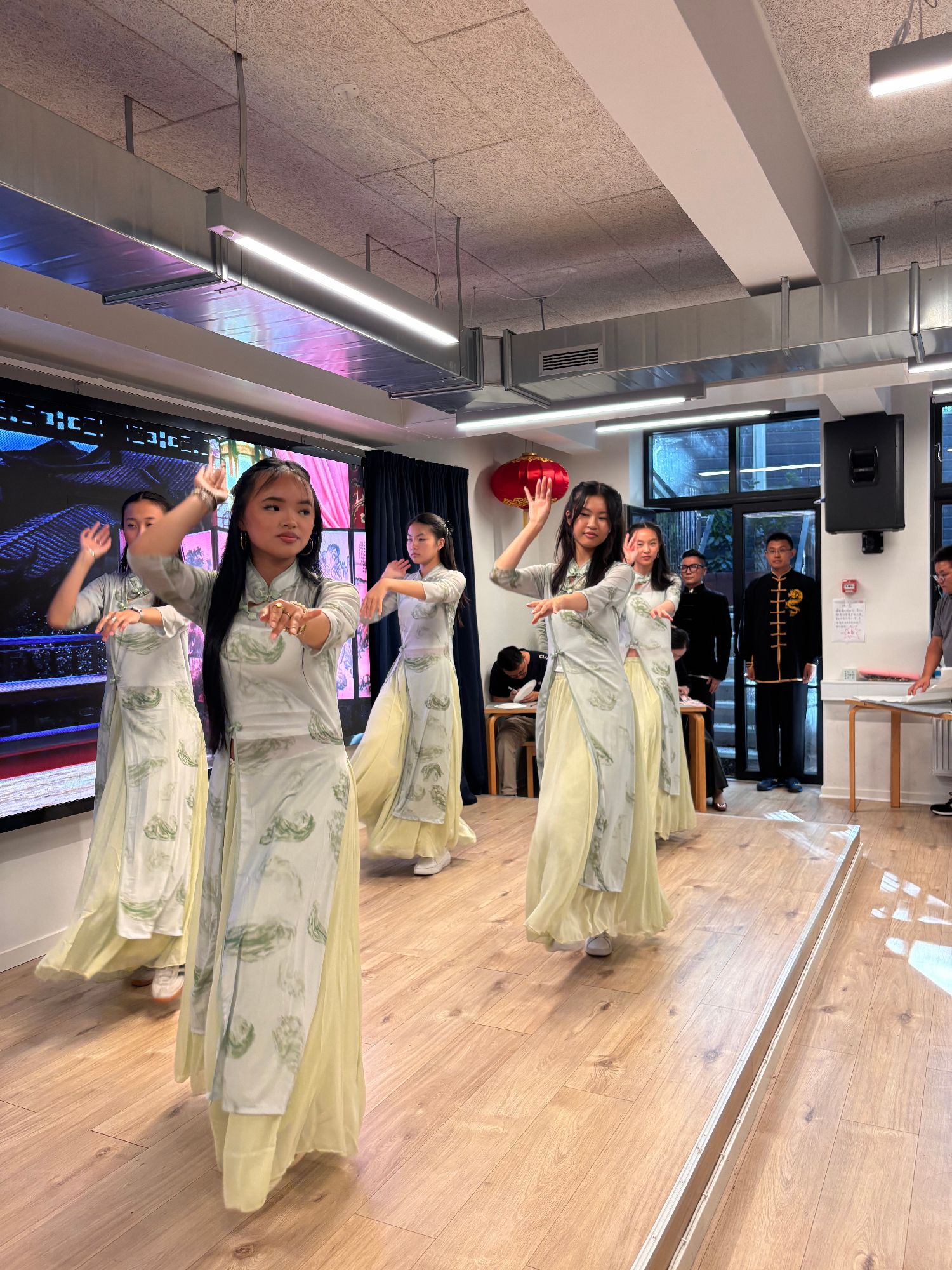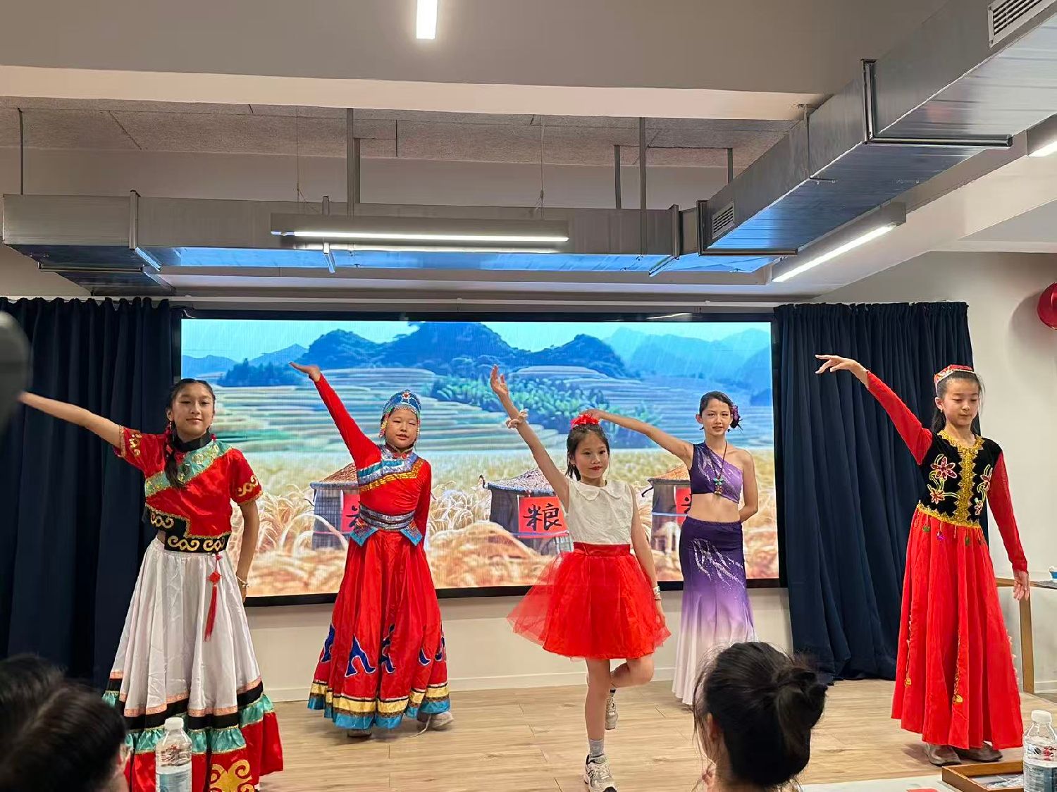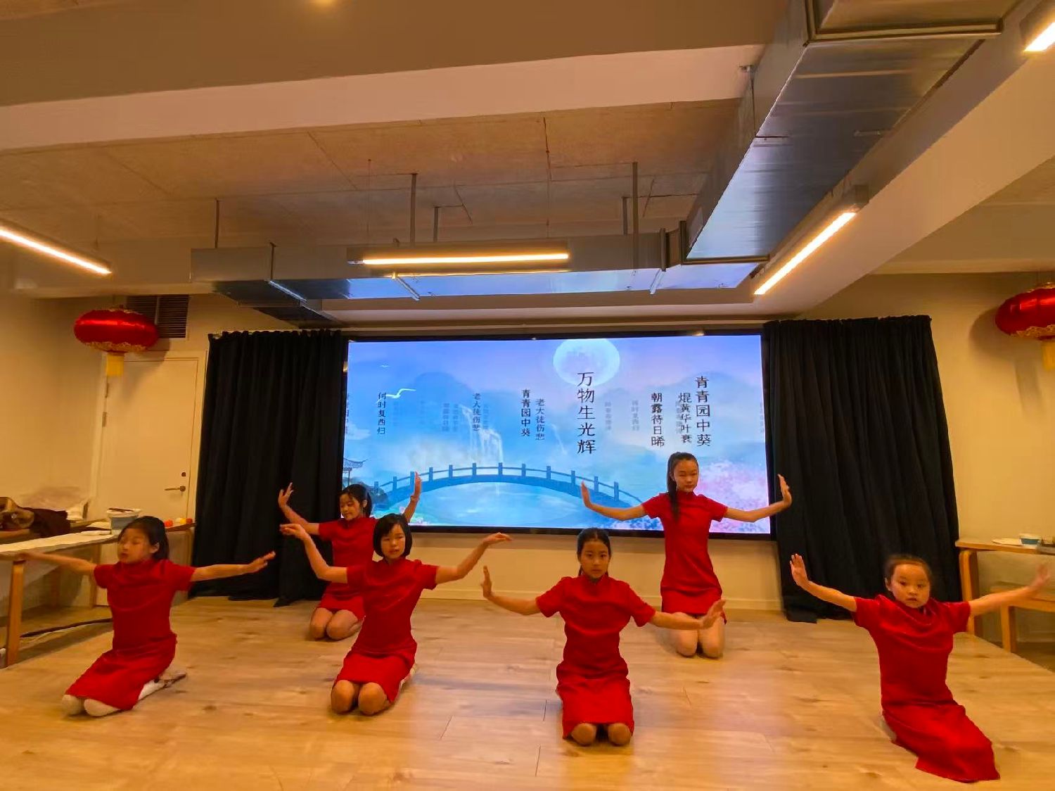 丹麦华人总会中文学校的学生为开营式献上了少儿舞蹈《长歌行》,身着红色旗袍的少儿,用优美的舞蹈演绎了汉乐府“长歌行”,“青青园中葵,朝露待日晞。阳春布德泽,万物生光辉。常恐秋节至,焜黄华叶衰。百川东到海,何时复西归。少壮不努力,老大徒伤悲。”鼓励孩子们从小要努力学习知识文化。他们在舞蹈的同时既学习了古诗词,又用舞姿展现了古诗词的魅力。