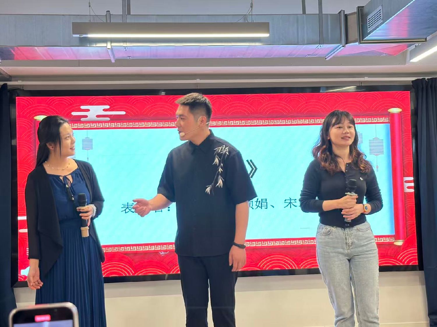 来自江苏的老师表演了小合唱“龙文”,由美女帅哥张婷婷、顾娟、宋志三人组合.“一弹戏牡丹,一挥万重山,一横长城长,一竖字铿锵,一画碟成双,一撇鹊桥上,一勾游江南,一点茉莉香”唱出了龙文的奇妙与气势。