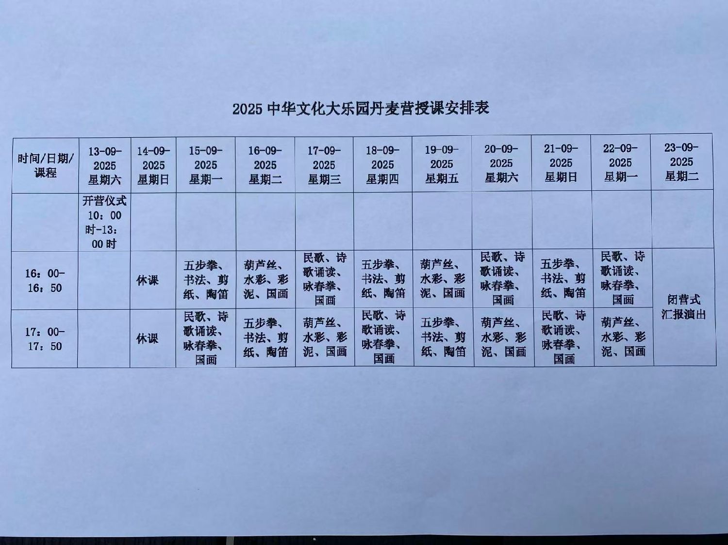 2025年9月13日,风和日丽,既有夏日的热情奔放,又有秋天的多姿多彩。在这美丽的季节里,《中华文化大乐园》——丹麦哥本哈根营开营啦!