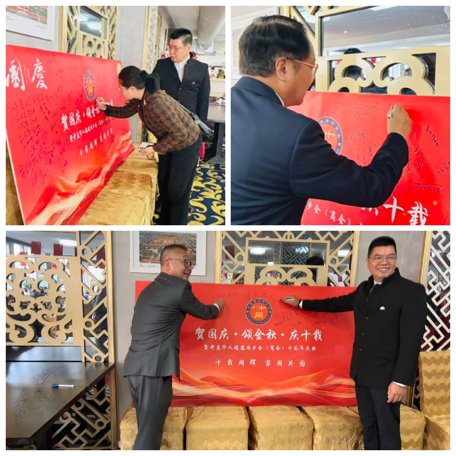 庆典在“御膳房”举行,一早“御膳房”已洋谥着喜庆与祥和,身着红色旗袍的美女,穿棱在人群中,李忠良会长、林伟名誉会长喜气洋洋地张罗着,迎接着嘉宾,中国驻丹麦大使馆王雪峰大使、苏莉雅公使、沈昂主任、王文吴领事、各社团代表、嘉宾与会员来到现场。并在“贺国庆·颂金秋·庆十年”的大型横幅前签名留念。