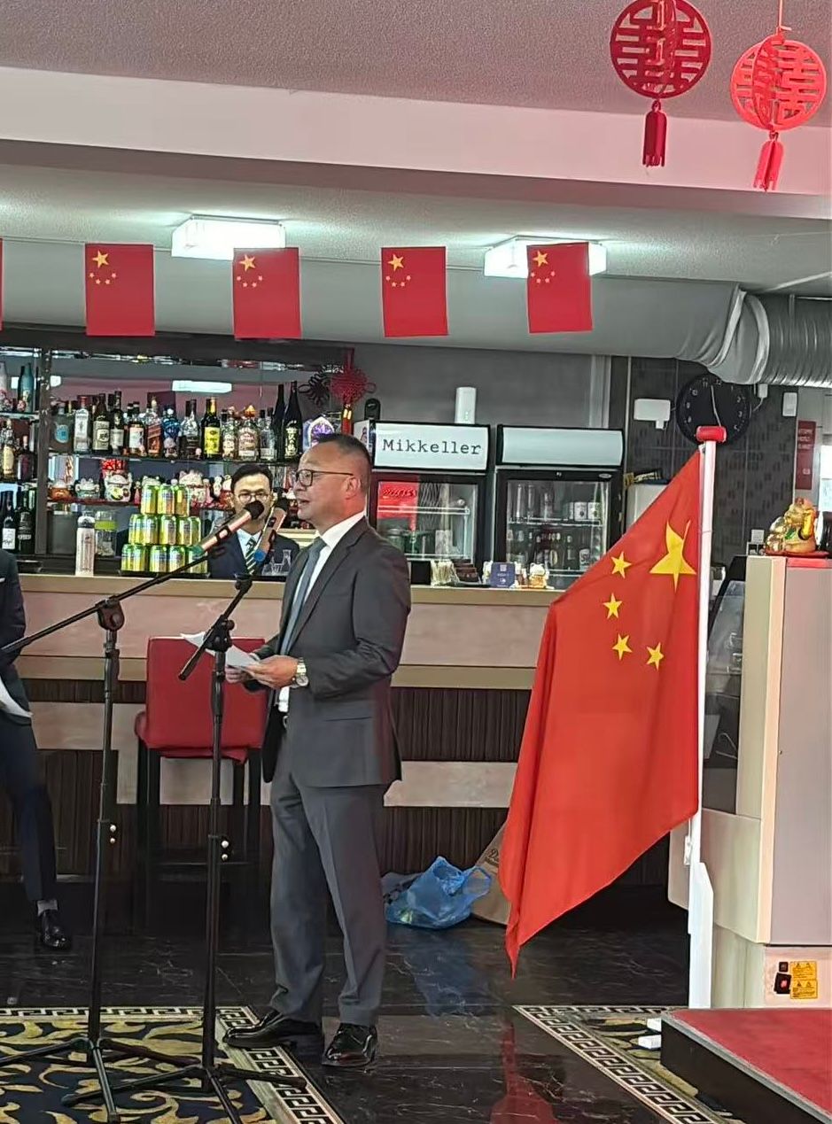 接着侨学界代表,丹麦华人总会主席林燕标送上了满满的祝福,福建同乡会爱国爱乡,为丹麦的经济发展作出了贡献,愿丹麦福建同乡会不断发展壮大!