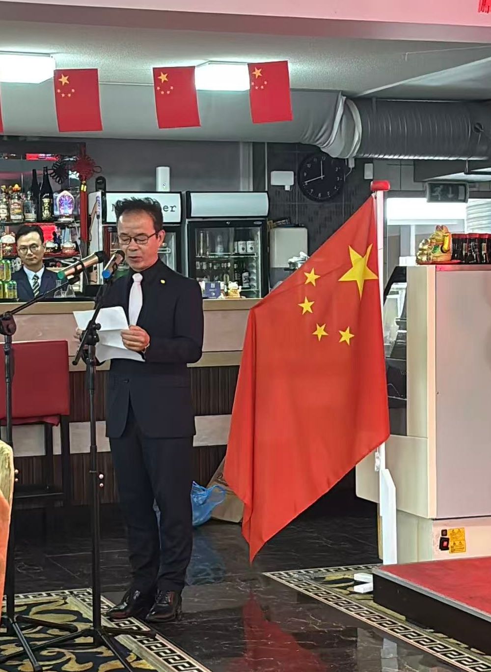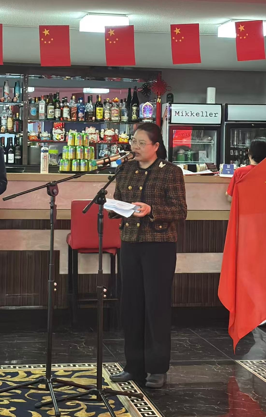 接下来由副会长马丁宣读了来自国内的贺电。来自福建归国华侨联合会的贺信里写道:十载耕耘,硕果盈枝。过去十年,贵会始终以“团结乡亲、服务侨胞”为已任,在维护旅丹福建乡亲合法权益、传承中华优秀文化、促进中丹民间交流等方面作出了积极贡献。国庆逢盛会,金秋话团圆。此次庆典是贵会十年发展的里程碑。归国华侨联合会对丹麦福建同乡会给予高度的肯定与赞赏。