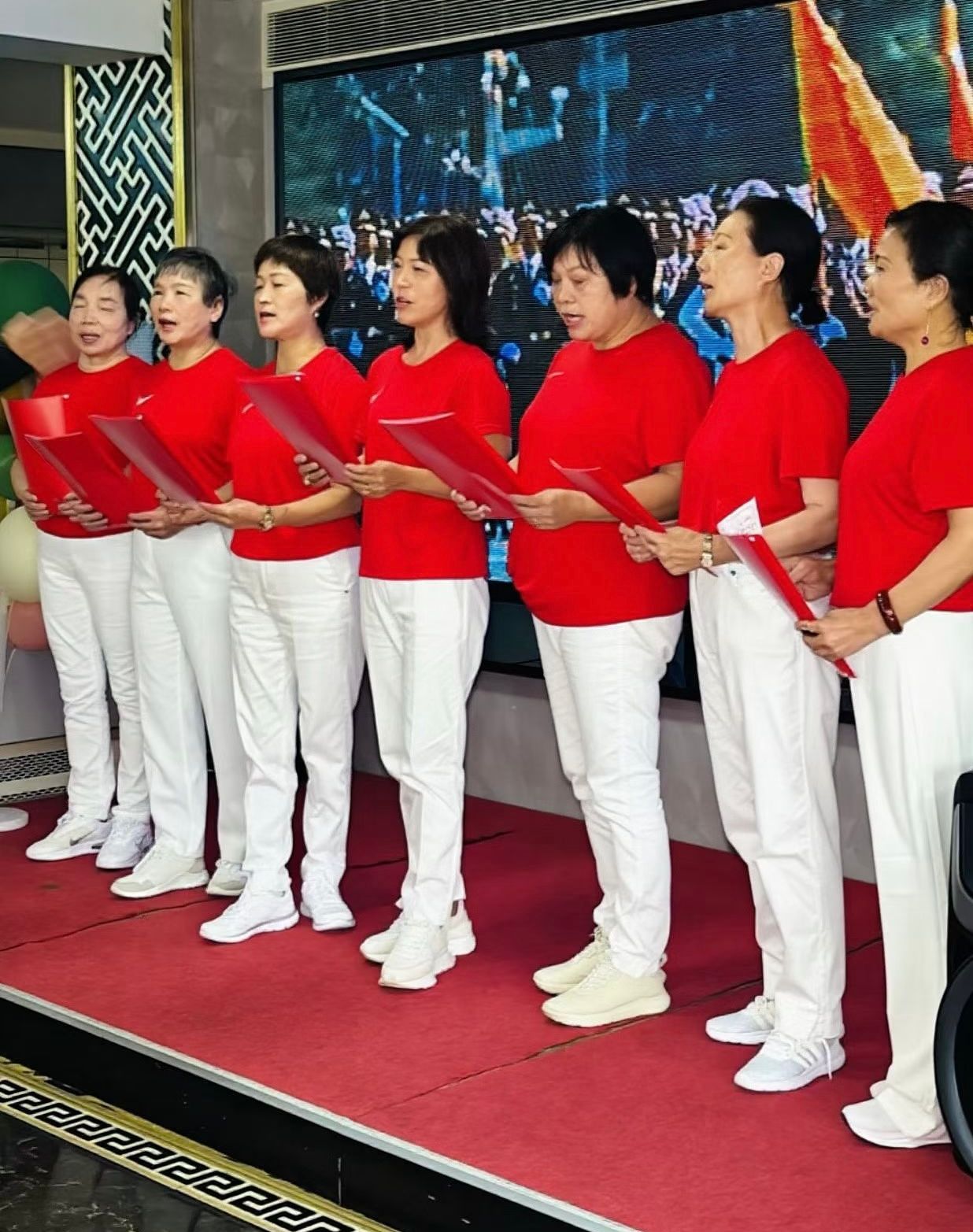 在一片掌声中,“水仙苿莉合唱团”身着红衣白裤的福建美女在陈瑞金的指挥下,为大家表演了合唱“歌唱祖国”和福州方言歌“十全十美”,雄壮的乐曲,亲切的乡音,引得了众多的粉丝,最后成了全场的大合唱,欢歌笑语在“御膳房”上空飘荡。