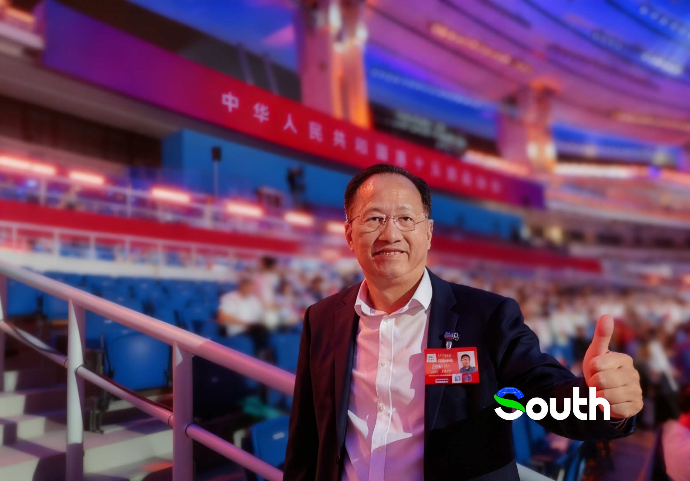 泰國中華總商會主席林楚欽在全運會開幕式現場。