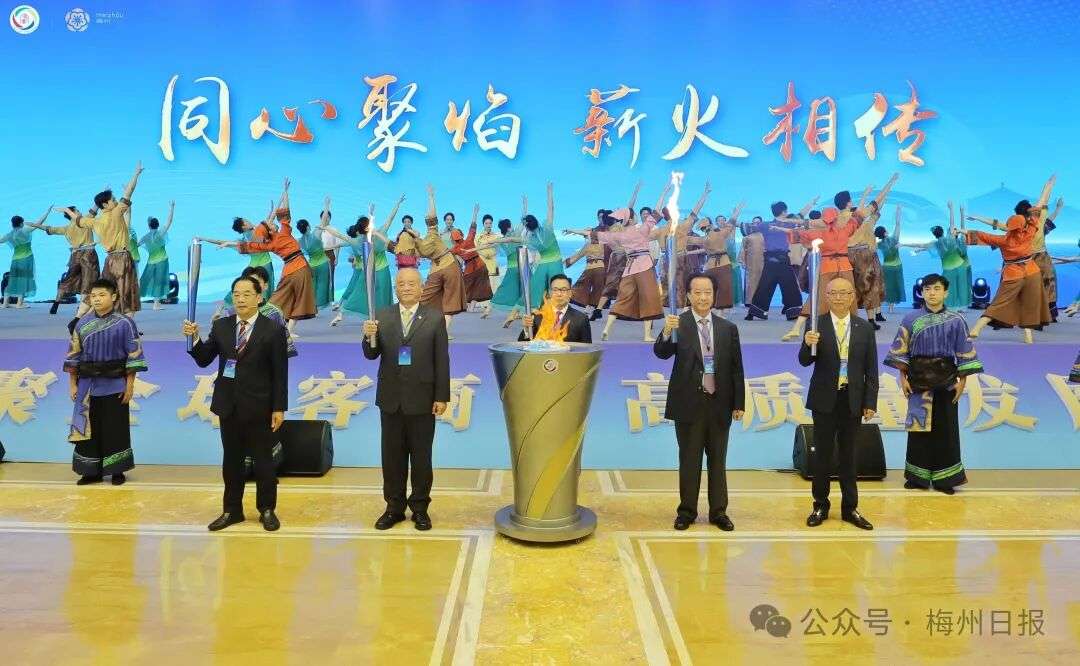 大会开幕式前举行了客家非遗展演和“同心聚焰·薪火相传”主火炬点火仪式。