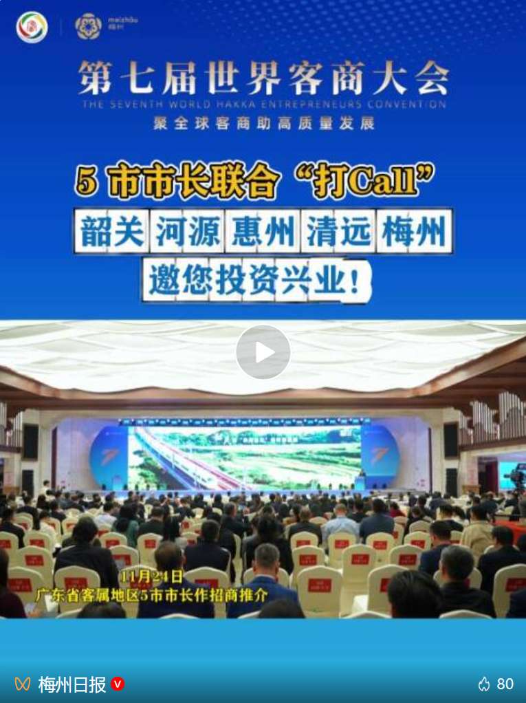 ▲广东省客属地区(韶关、河源、惠州、清远、梅州)5市市长作招商推介