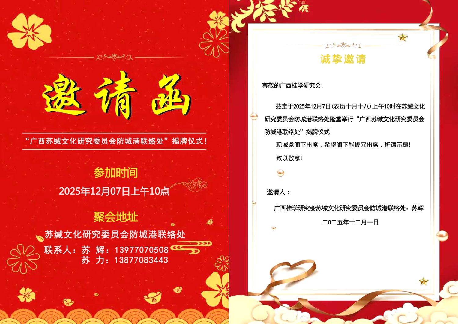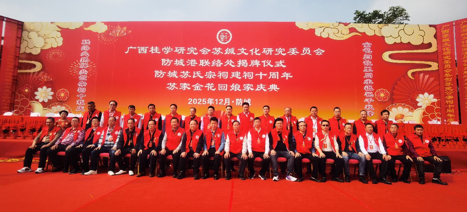 防城港,是广西的蓝色海岸,也是南海与大西南文明交汇之地。海风吹来古老的歌声,崇左山脉延续着千支万派的血脉。这里,镌刻着苏氏族人的归来印记——十年前,宗祠奠基;十年后,桂学研究会苏缄文化研究委员会防城港联络处揭牌,金花回娘家,以新时代乡贤文化的方式,把族人散落在外的心,再一次牵回了祖宗脚下的土地。