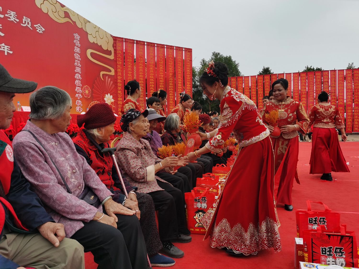 鸣炮、鼓乐、醒狮,金花绕场,宗亲迎亲,长者前排受礼——“尊老”被放在整个仪式的核心,这不仅是礼节,也是族规,是文化根本。