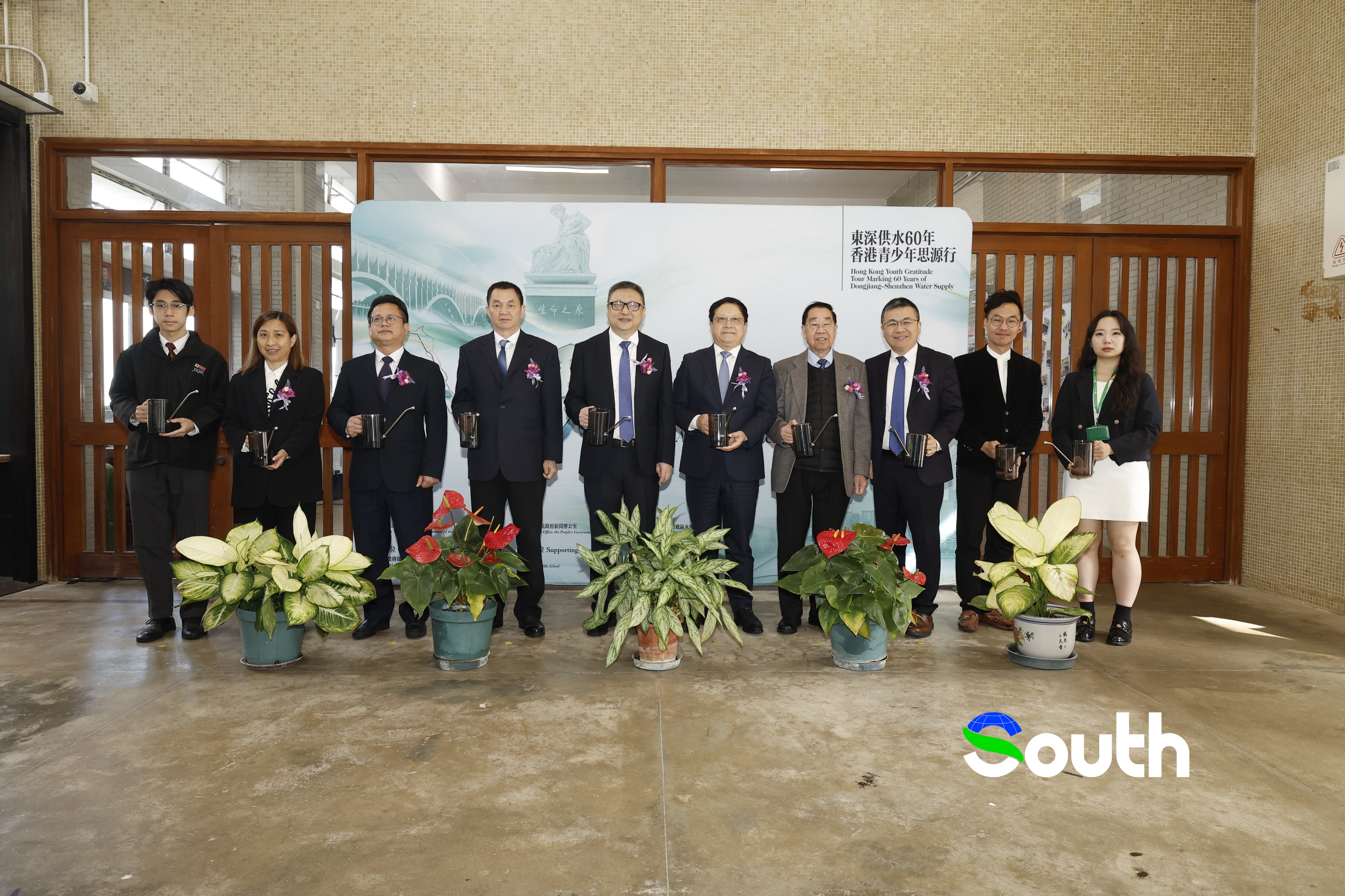 19日,「一江碧水向南流——東深供水60年香港青少年思源行」多媒體展覽及故事荟在香港培僑中學拉開帷幕。開幕式上,10位主禮嘉賓與學生代表手持盛有東江水的澆灌壺,共同將江水傾注於台前花盆,象征著粵港兩地血濃於水的深厚情誼,以及愛國愛港的赤誠精神,將如奔流不息的東江水,滋養心田、代代相傳。