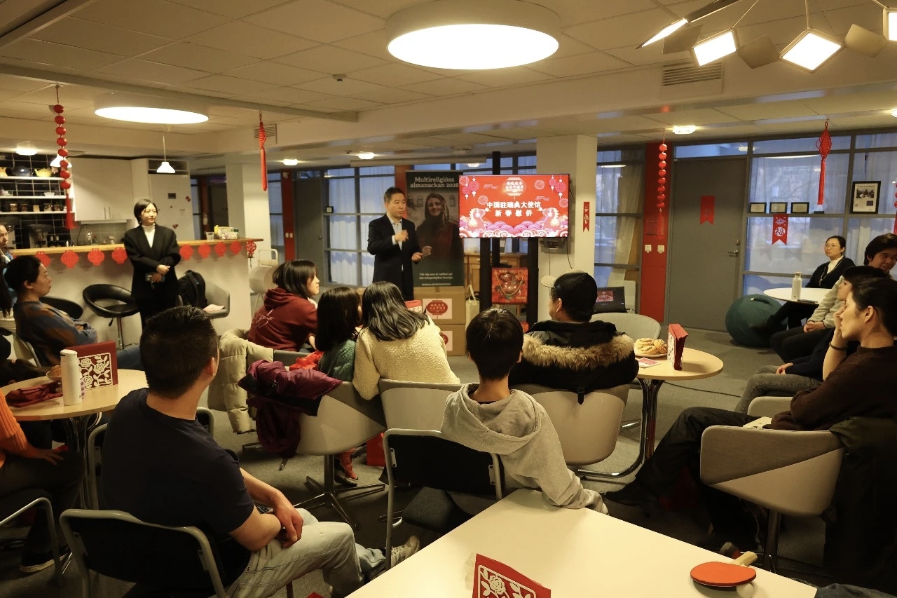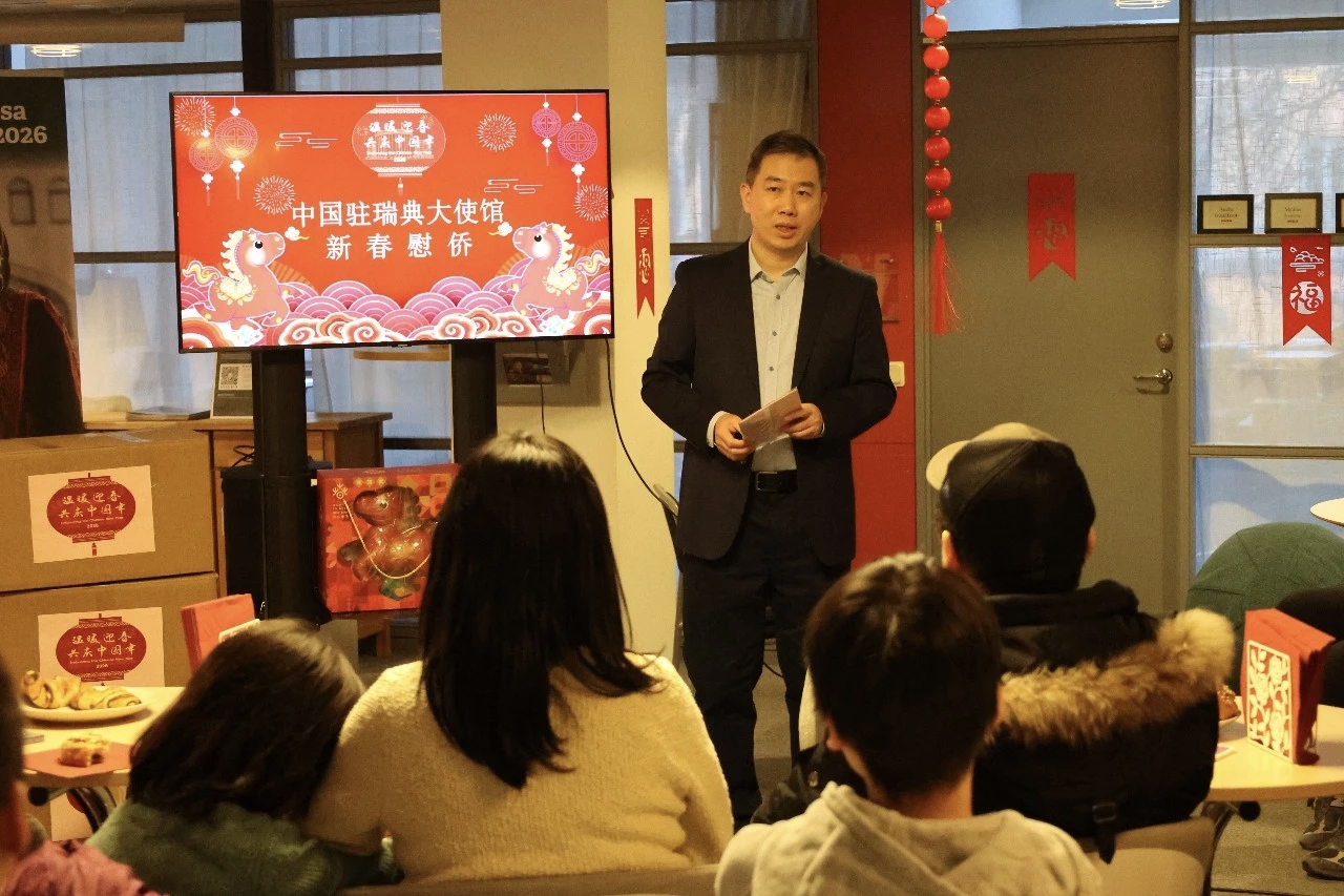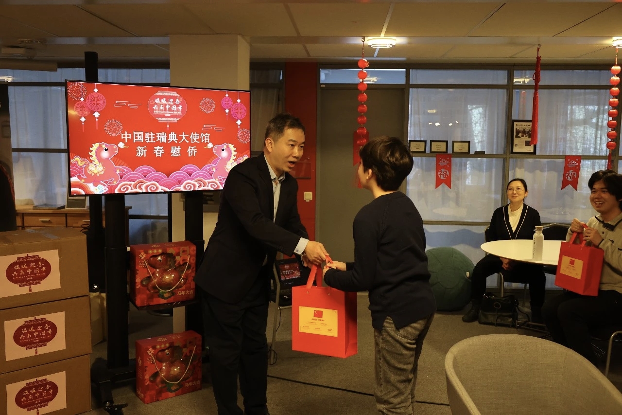 2026年2月7日,中国驻瑞典大使馆领侨处主任杨冠达赴乌普萨拉走访慰问当地侨胞和中国留学生,并发放饱含新春祝福的暖心包、新版中文教材、领保外宣品等。