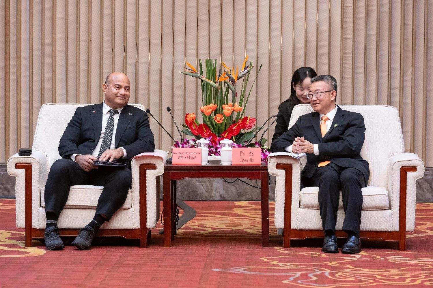 陈杰与阿迪昂总统会面交流周华东摄