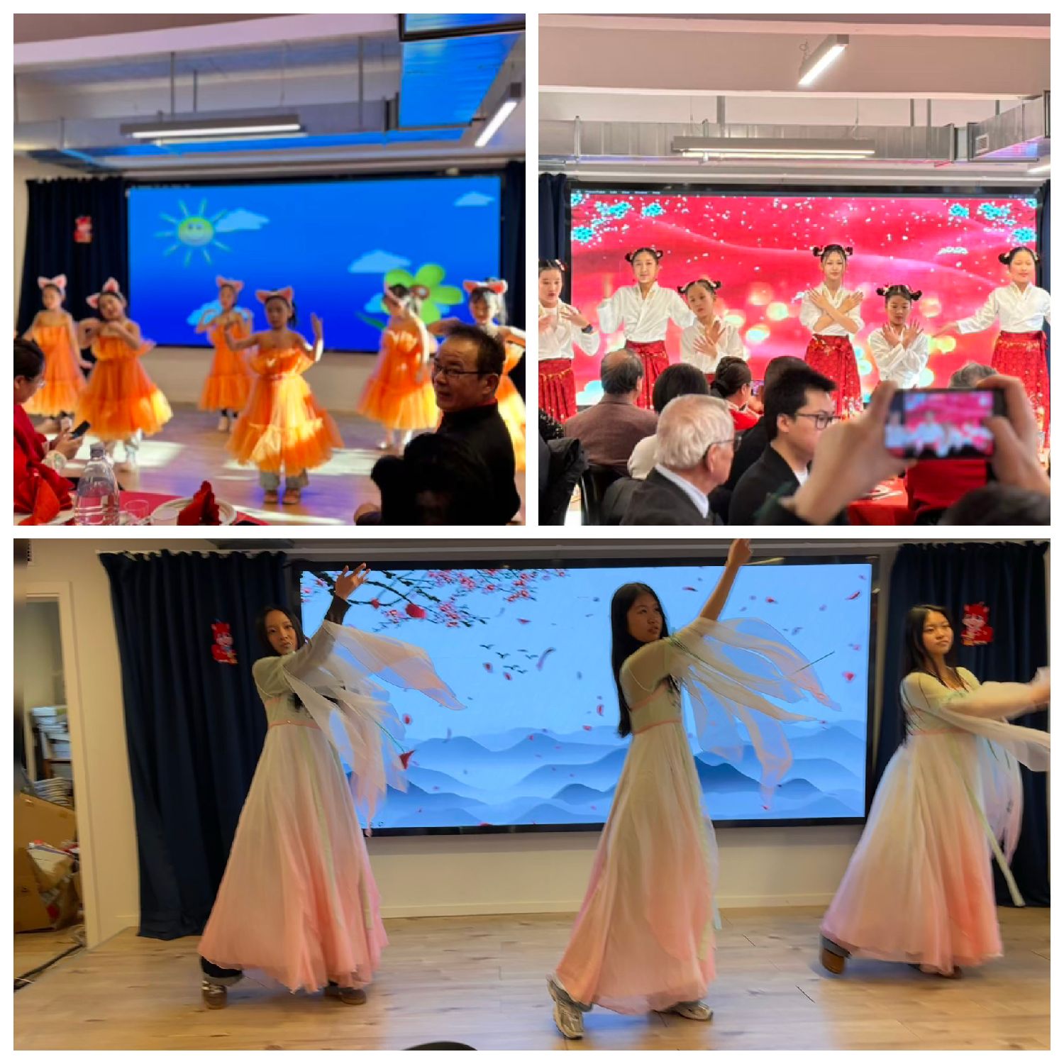 文艺演出开始,丹麦华人总会中文学校的孩子们来向叔叔阿姨、爷爷奶奶、爸爸妈妈拜年啦!第一个舞蹈“拜年了”,穿着马面裙的孩子们通过舞蹈再现了春节孩子们向长辈们拜年的习俗。“小猪佩奇”也来参加我们的春节联欢会,孩子们活泼可爱,再现了春节带给他们的喜悦与欢乐。
