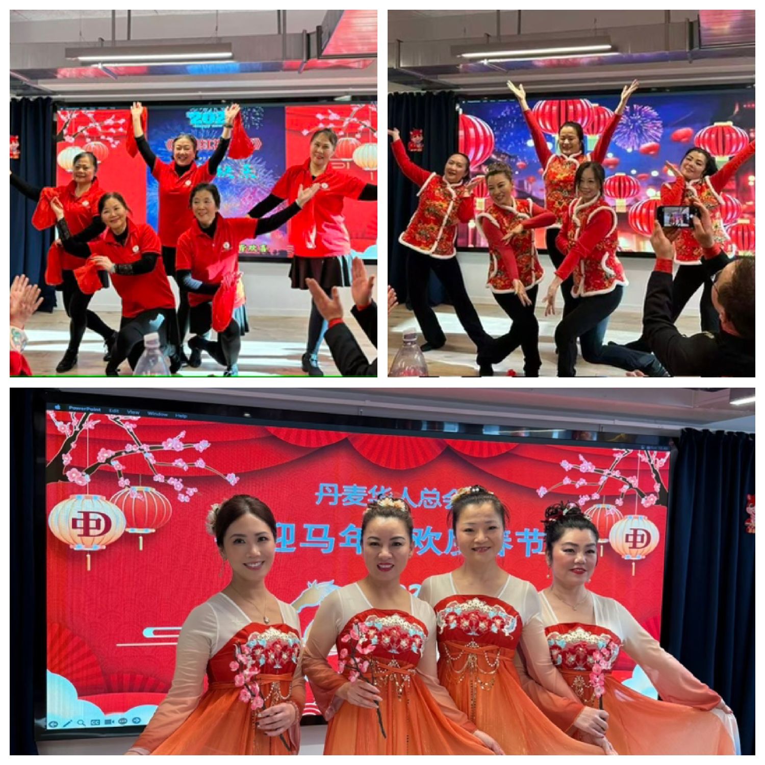 丹麦华人总会妇女会带给我们的第一个舞蹈是《闲庭絮》,一群姑娘翩翩起舞,舞蹈表现了与知己相伴的闲适与安宁。《开门红》的音乐响起,姐妹们从台下跳到台上,她们朝气蓬勃,充满活力。跳出了对马年的期盼和祝福,希望每个人都“开门红,红似火!”