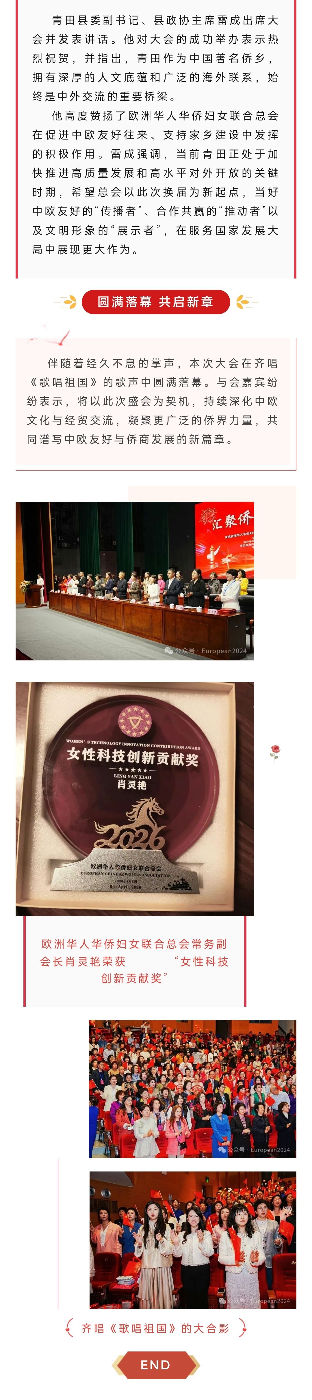 公益活动丨汇聚侨乡力量 绽放巾帼芳华——欧洲华人华侨妇女联合总会成立21周年暨第十届理事会换届大会在浙江青田隆重举行