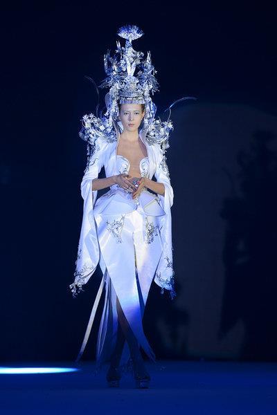 自2013年创牌以来,熊英坚持以国风主题为主导创作概念进行系列服饰发布。缂丝、苏绣、羽绘、花丝镶嵌等诸多东方非遗工艺被全情诠释于各季作品之中,传承与创新中国技艺瑰宝的同时,她更在西式裁剪中寻找到一种衣物平面与立体的空间效果。缂、绣、画、染,出神入化;图、纹、珠、饰,相映成趣。盖娅传说,成为“中国风艺术美”的代言。