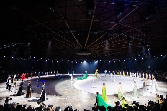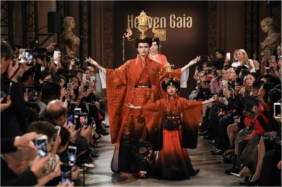 与此同时,盖娅传说每完成一场巴黎大秀,必定在国内也做一场大型发布,在东西、中外之间做一个呼应与平衡。2020年疫情之下仍未停步,《若水》《乾坤·沧渊》两场大秀继续登陆中国国际时装周。再到2021年《征途》,从海洋到陆地,从东方到西方,从古到今,从天玄地黄到文化人生,盖娅传说的宇宙观、世界观、生命观在持续输出。以华夏文明的当代演绎为宏大主题,熊英为现代创意的国风服饰精心搭配了戏剧化的梦幻沉浸式场景,一次次引爆新的狂欢。