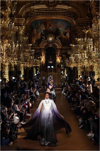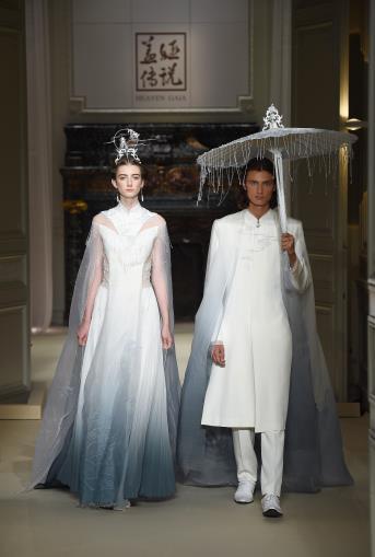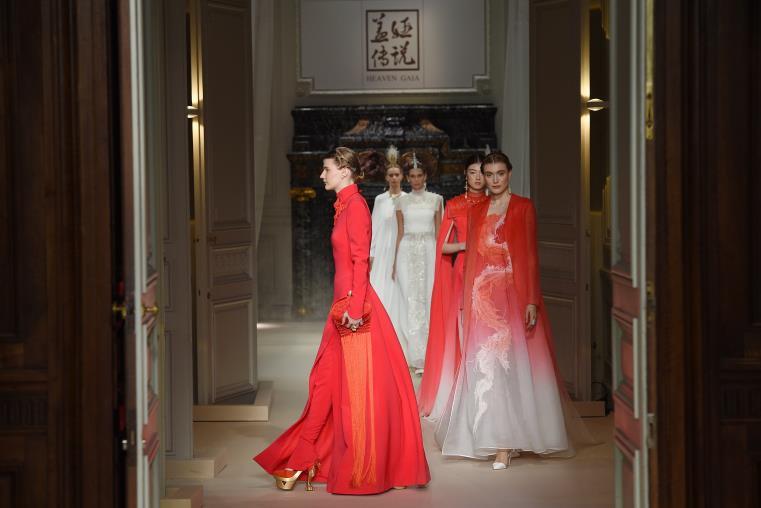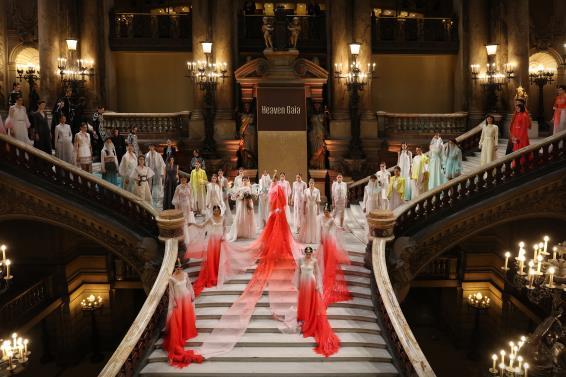 之后,便是“啟承轉合”四场东方主题大秀连续四年参加巴黎时装周。2016年《啟/大圆智境·圆明园》首登巴黎歌剧院,2017年《承/四大美人》再赴这西方艺术殿堂,2018年敦煌主题的《轉/画壁·一眼千年》转场罗斯柴尔德公馆,2019年戏曲主题的《合/戏韵·梦浮生》惊艳了巴黎小皇宫。