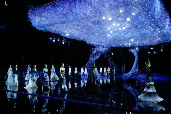 熊英举办的每一场时装秀,从场地选择、制景的精雕细琢,到主题音乐、妆容头饰无不匠心独具。她更注重文化内涵的输出、生活品味与理念的传达、视听演艺形式的多样化呈现,为时装秀演的综合观赏性做了重新定义,她的发布会也成为了一票难求的“现象级”盛典。