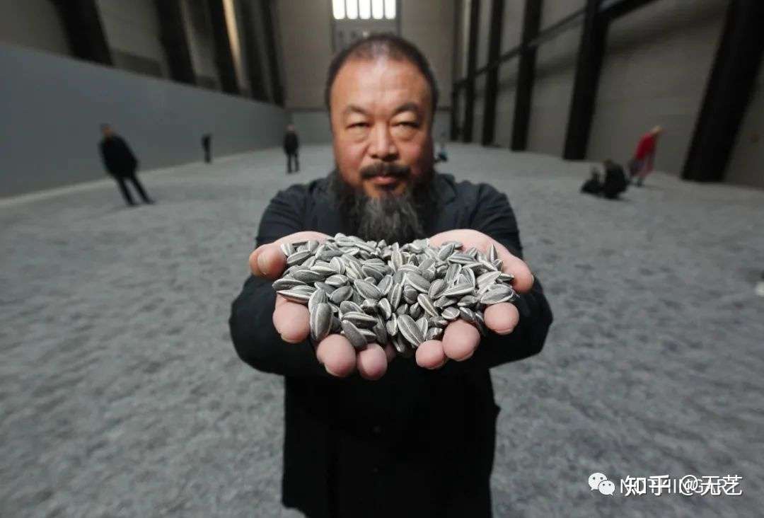 前者是一个装置作品,由数百万个单独手工制作的陶瓷葵花籽组成,重约10吨,像一张大床一样在房间里铺开。