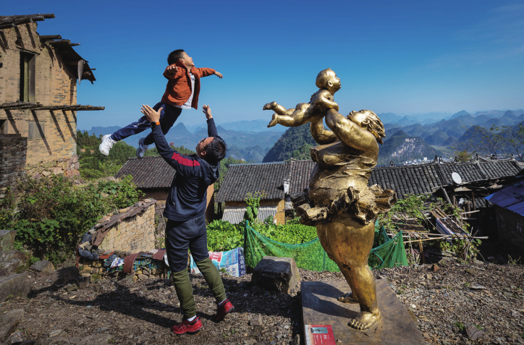 2021年11月,许鸿飞的雕塑艺术百村展来到了连南千年瑶寨,这个地方对他来说有着特殊的意义——早在2009年,他的雕塑作品就曾经在这里展出。“散布在田间地头的雕塑,仿佛是从泥土中长出来一样。”如今再一次回到这里,许鸿飞将展览主题定为“少年归来”。