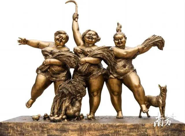 广西艺术学院造型艺术学院副院长魏杨博文,则以铜雕的形式将少数民族地区医疗帮扶的生动场景记录下来。许鸿飞也以反映农业农村题材的参展作品《丰年》助力乡村振兴。