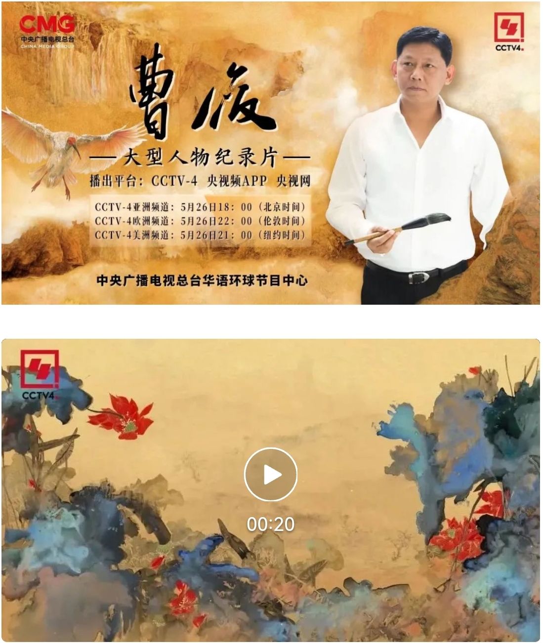 曹俊被联合国官员称为“影响世界的华人艺术大家”,他的创作风格多种多样,既有像《山海千万里》这样表现中国古典审美的“新宋式”绘画,也有传统的中国水墨画、工笔画、泼彩画。