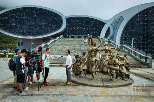7月19日,“环游世界的胖太阳走进南海Ⅰ号——许鸿飞雕塑世界巡展·中国阳江”在广东海上丝绸之路博物馆开幕,展出作品包括了《鹅》《欢歌》等。更加值得关注的是,许鸿飞的新作《民族大团结》也在开幕仪式现场揭幕。