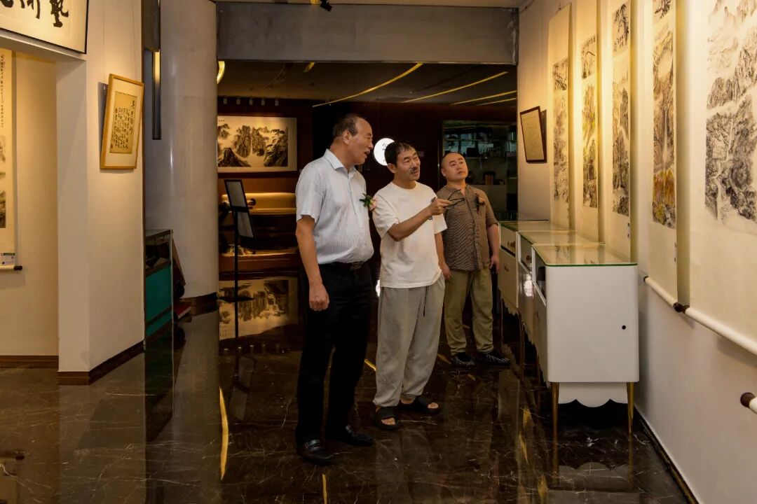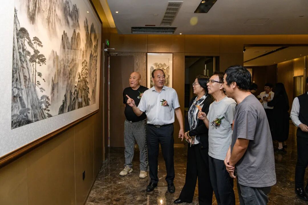 展览开幕式由绍兴市越城区美协主席沈伟主持,出席开幕式的嘉宾有:美术教育家、中国美院教授叶尚青,原绍兴文理学院美术学院院长、浙江省文创产业规划与技术评估中心主任陈浩,绍兴伟融酒店管理有限公司董事长吕伟青,画家朱海刚,中国美术学院博士、中国美术学院高研班导师陈伟峰,绍兴市收藏家协会副会长兼秘书长单建华,书法家沈大晔,《当代美术》主编马占伟,浙江省新四军研究会书画院花鸟部部长张茂新,浙江省新四军研究会人物部副部长翁雪飞,浙江画院研究员、柯桥区美协副主席蒋雪平,嘉兴警用皮业董事长窦卫建,古韵轩拍卖总经理汤幸,六和塔品牌创始人韩茶珍,以及广大书画爱好者和市民朋友。本次展览共展出画家骆振龙中国画作品63幅,既有八尺整纸巨幅山水与花鸟,也有平尺斗方小幅精品,其山水作品将万里河山驱遣于尺幅之内,尺幅之间气象森然、意气豪阔、笔墨厚重、异象纷呈,以油画之思维运笔墨之灵气,浑无间隙,自成一格。近七年来,骆振龙为“绿水青山就是金山银山”的伟大理念不辞辛劳创作了许多优秀作品,受到各界的广泛赞誉,他这种对祖国山河的热爱和传承铁军精神的勤奋意志令人敬佩。本次展览持续到10月28日,定将为来自全国各地的游客及绍兴市民带来一场饕餮视觉盛宴,诚挚邀请广大书画爱好者前来参观展览与交流。