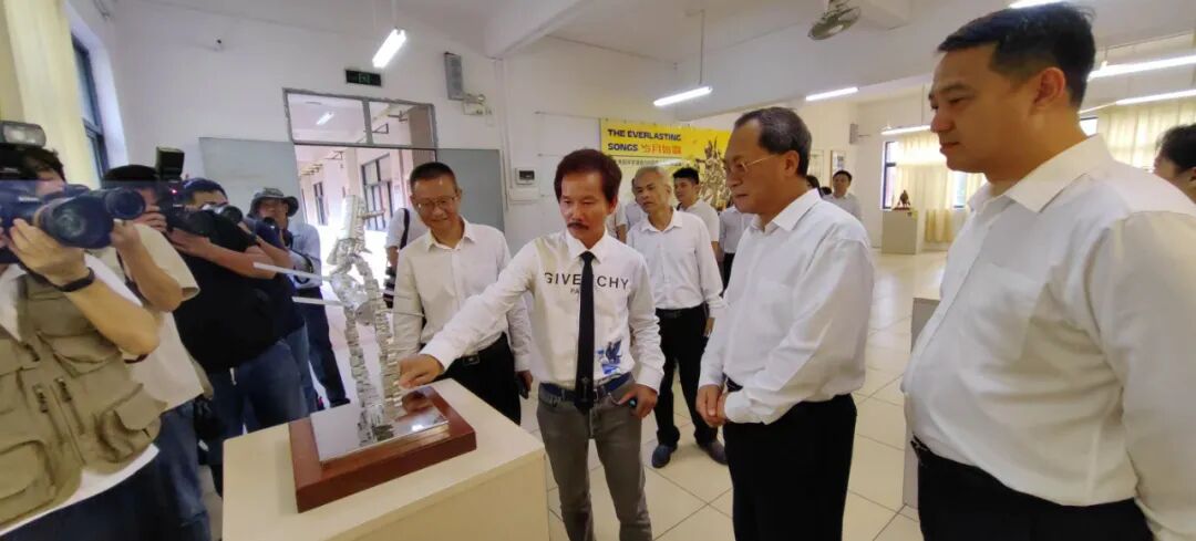 时值广东两阳中学建校120周年,知名校友阳江籍雕塑家许鸿飞携30多件雕塑作品返校办展,并向母校捐赠主题雕塑作品,祝福母校并寄语广大两阳学子要刻苦钻研真本领,勇于追梦,创造更多高水平的艺术佳作,延续两阳百年优秀的艺术基因。