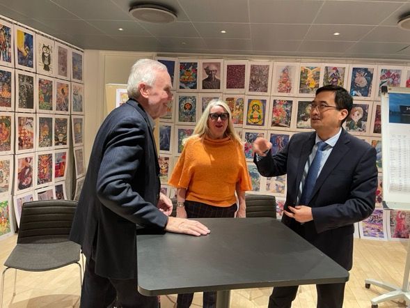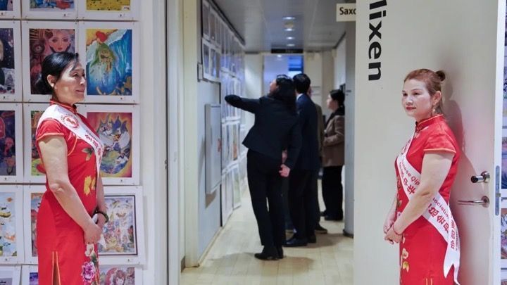 此次安徒生国际艺术展恰逢中国春节,展览开幕仪式上特别邀请到中国驻丹麦大使馆临时代办秦杰,欧洲议会前议员Britta Thomsen,欧洲文化中心联盟前轮值主席、丹麦安徒生文化艺术发展委员会主席Finn Andersen等嘉宾出席。