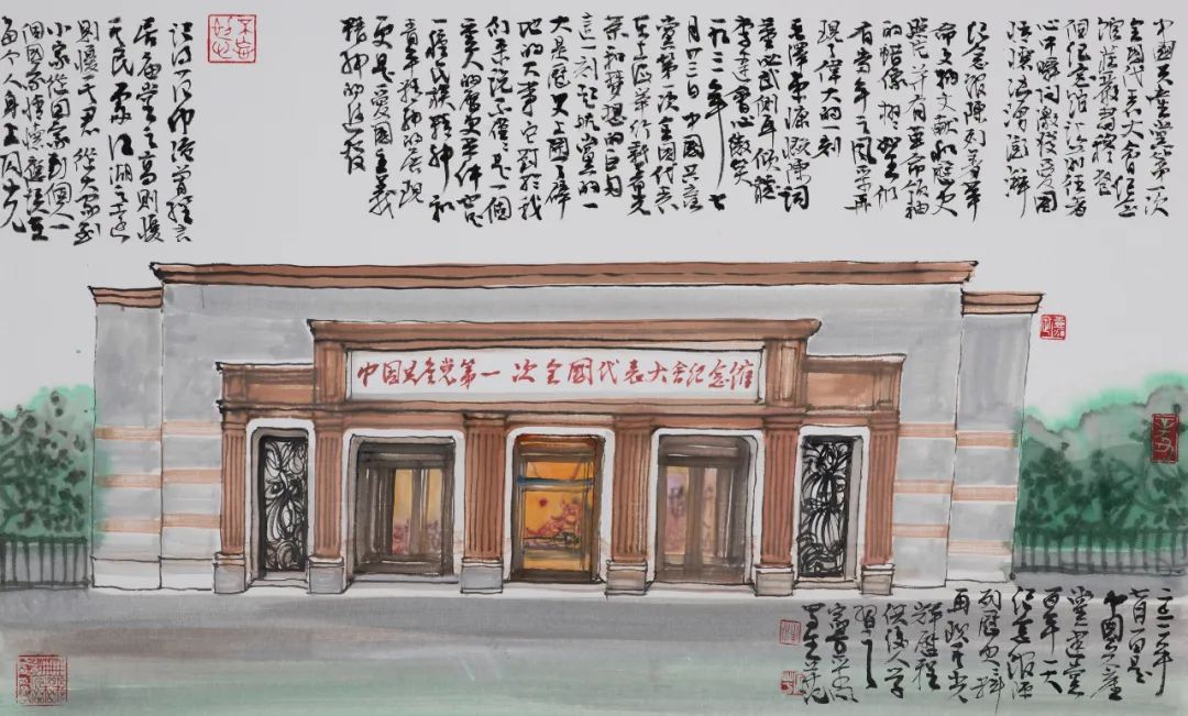 近年来,汪家芳一直在探索,用中国画独特的视觉形式,努力为上海创作时代的“大画”,开拓中国画城市表达的新境界。他创作的国画作品《上海》《浦东》《初心》,把高楼比作高山,将山水引入城市,在中国画中融入了西洋画对城市的表现方式,在具有海派艺术兼容并蓄的精神内涵的同时,又创新出新颖别致的城市山水风格,成为对海派艺术的一次探索。