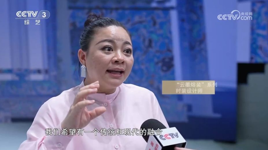 “云墨熔装”系列时装设计师陈月红:我们希望有一个传统与现代的融合,运用到现代时尚里面去,把非遗的这种工艺怎么样去结合到时尚里面去,运用到生活中去。