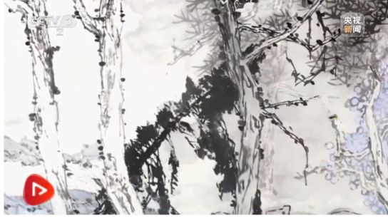 李巍:这个画里头一定要达到这种和谐。你比如这4个叶子是一笔墨,只加水不加墨画到最后的变成淡的,画葡萄也是,最浓的一直到这儿,这个松鼠和这个松鼠,这两个都是用一个墨来画的,因为什么东西,他这气中国画讲气,气是连的,气不断,其实气是一种流动的一种状态,气里头分阴阳,阳气在比较刚的地方就是用阳,然后重墨,笔比较挺拔,线比较硬,这个柔的就是用淡的墨是比较软的笔法,不是直的,不是棱角很多的,它们两个一配合就是和谐。