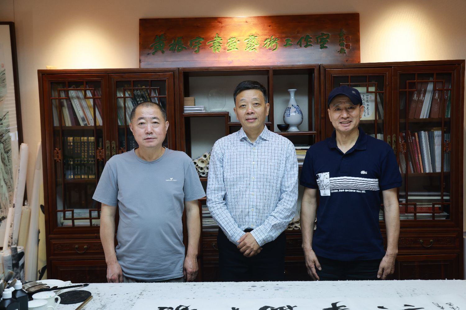此时工作室的茶案前,几位寻隐者正在品鉴黄振宇的《溪山问道》。来自瑞典斯德哥尔摩的Robin先生轻抚着画中若隐若现的乌篷船:"这些看似留白的空间,像极了我们北欧的极光。"黄振宇含笑添茶,案头新沏的西湖龙井泛起涟漪,倒映着墙上的富士山写生稿。艺术的对话,有时比外交辞令更能跨越山海。